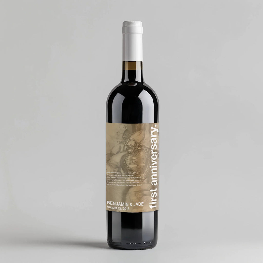 Celebrate your love with purposeful, beautiful details. With our anniversary wine bottle labels, even a simple wine bottle becomes a heartfelt tribute.