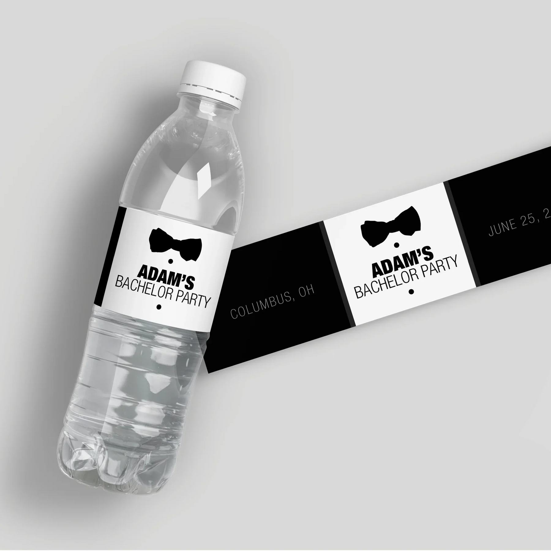 A sleek, personalized tribute to the groom's "Suit Squad"! These custom water bottle labels feature a sophisticated suit or tuxedo graphic (or just clean, bold text). They are the perfect favor for a bachelor party, wedding reception, or groomsmen gift, adding a refined, cohesive touch to your celebration's beverage station. Printed on waterproof vinyl, they are fully ice-bucket ready.