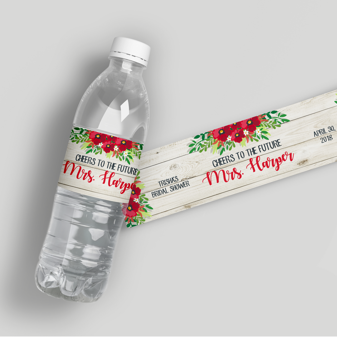 Our bridal shower water bottle labels can be coordinated with other bridal products from our shop to create a seamless and stunning presentation. Explore: