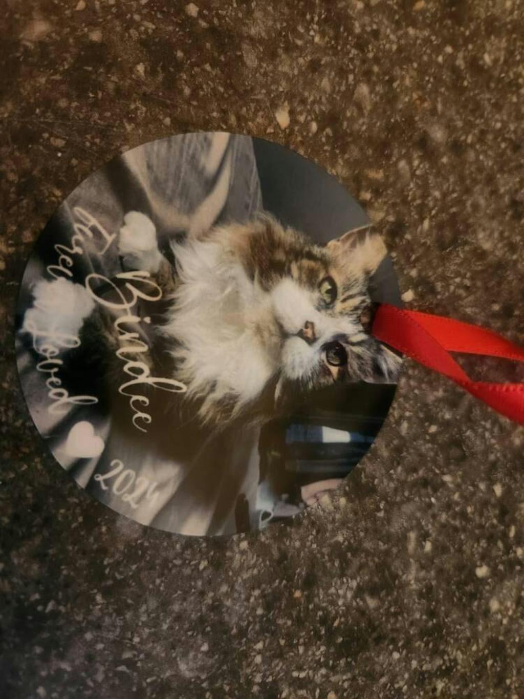 Honor your beloved pet with the Furever Loved Christmas Ornament. Featuring a touching design, this ornament is perfect for remembering a lost furry friend. Customize with your pet’s name and dates.