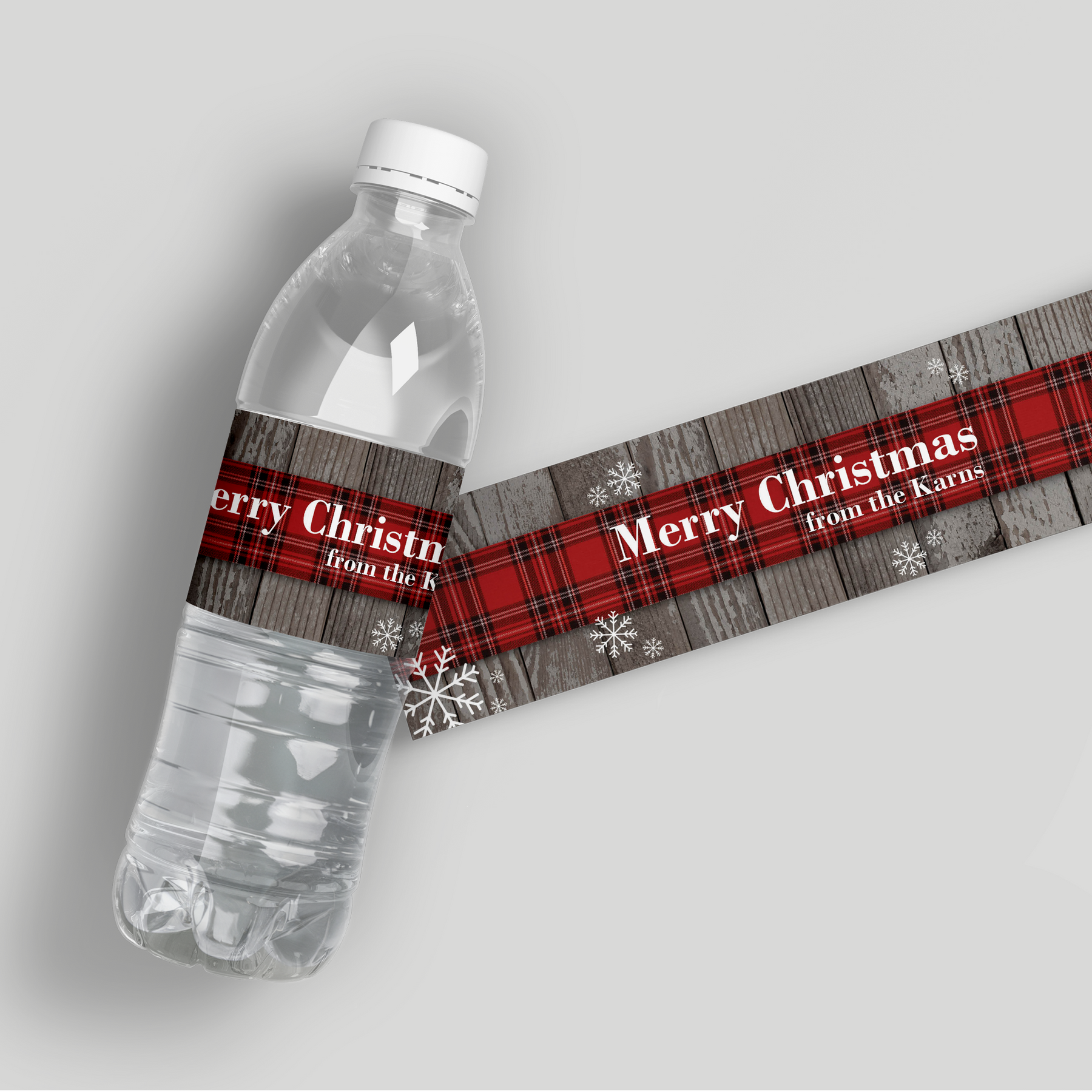 Cozy plaid comfort for your rustic Christmas celebration. These custom water bottle labels feature a classic flannel or plaid pattern. They are the perfect favor for a rustic holiday party, casual Christmas dinner, or winter event, adding a warm, textured touch to your beverage station. Printed on waterproof vinyl, they are fully ice-bucket ready.