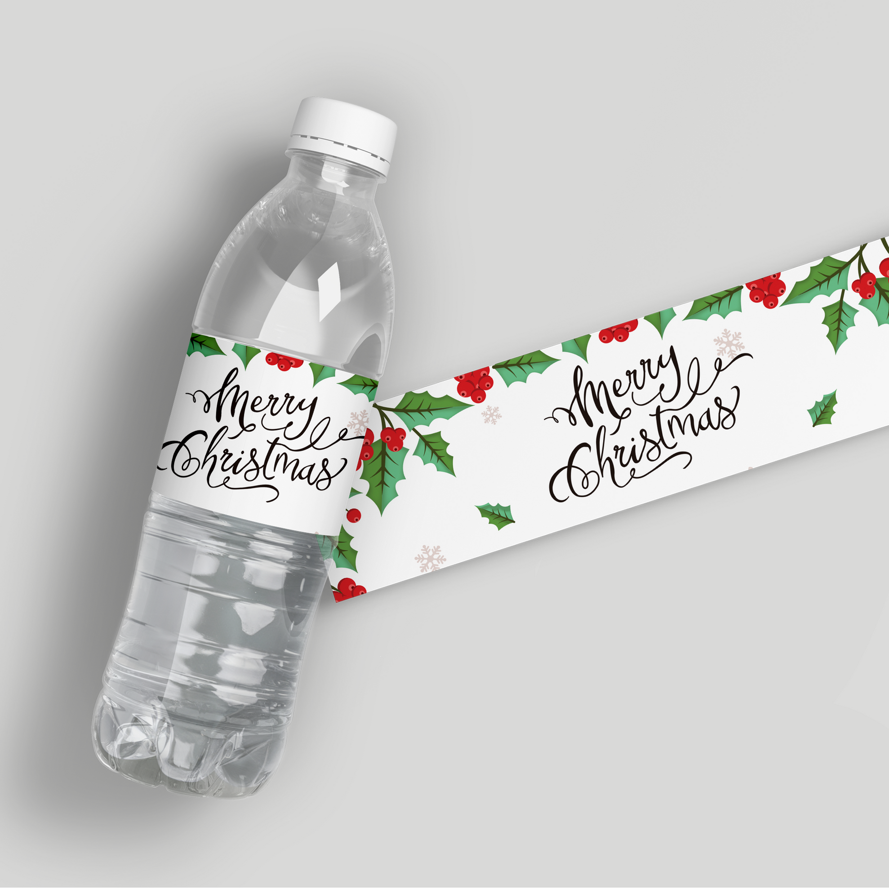 A festive kiss of holiday cheer! These custom water bottle labels feature the classic holly and mistletoe motif. They are the perfect favor for holiday parties, winter weddings, or Christmas celebrations, adding a traditional, sweet touch to your beverage station. Printed on waterproof vinyl, they are fully ice-bucket ready.