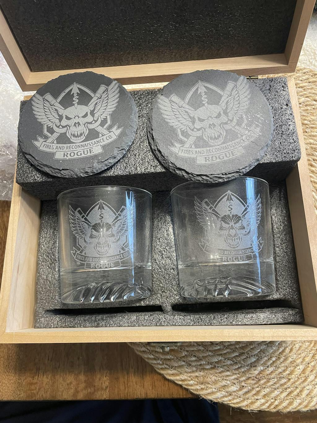 Glasses came out amazing! Everyone was extremely impressed with the quality of the glasses and the beautiful box they came in.