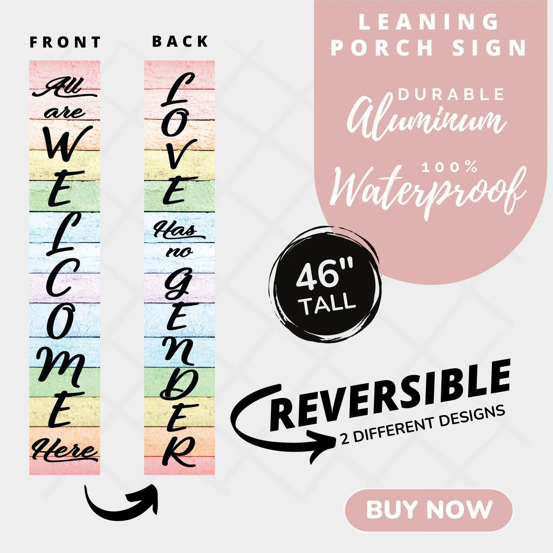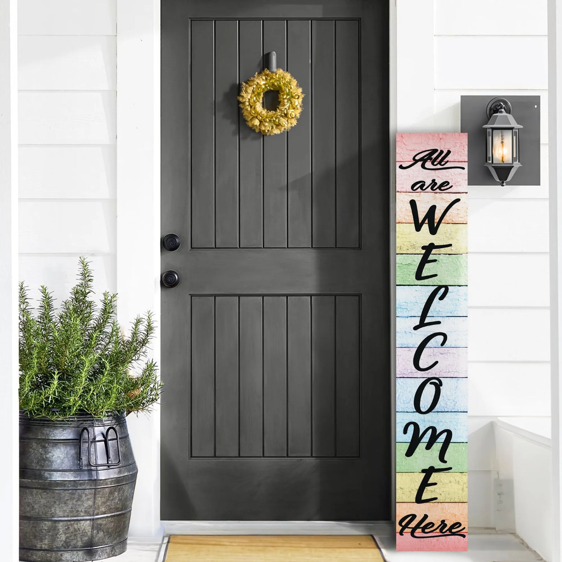 Welcome guests to your home with this whimsical "All Are Welcome" Porch Leaner Welcome Sign! This eye-catching piece is sure to bring some warmth and charm to your entryway. Perfect for showing everyone that your space is a judgment-free zone!