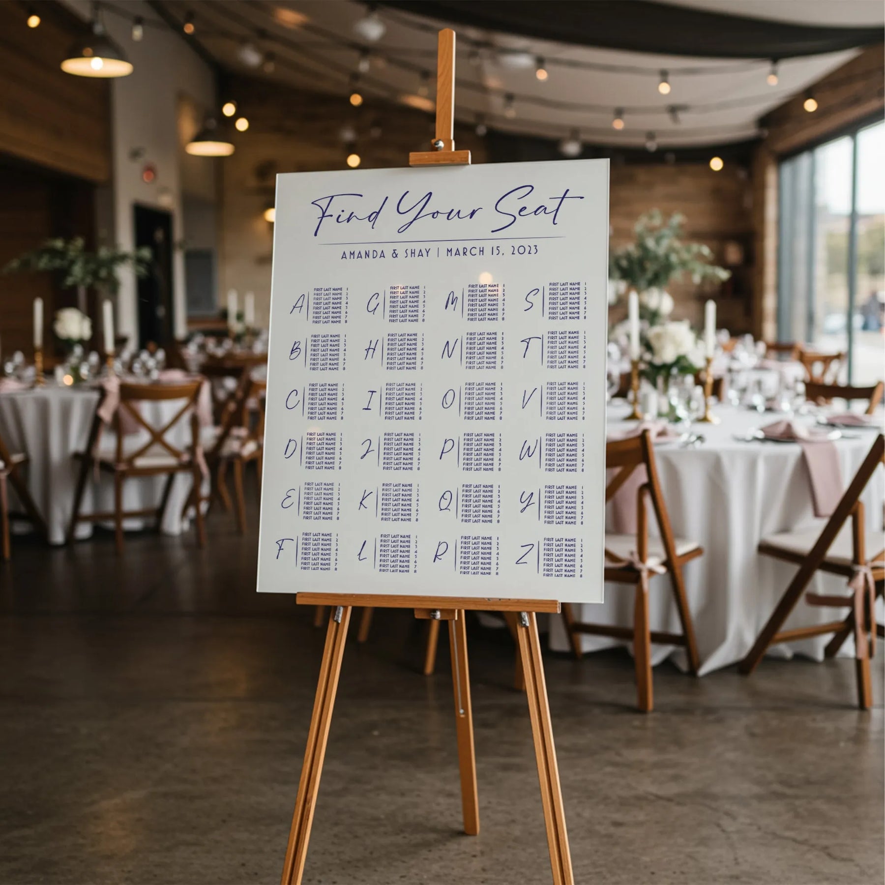 A wedding seating chart is a visual representation of the seating arrangement for your wedding reception. It helps you plan and organize your seating arrangements, ensuring that your guests are seated comfortably and conveniently. Typically, a wedding seating chart includes the layout of the tables, chairs, and other elements in the reception space, as well as the names and assigned seats of each guest. This graphical representation not only helps in creating a smooth flow during the event but also ensures that everyone knows exactly where to sit, making your special day even more enjoyable.