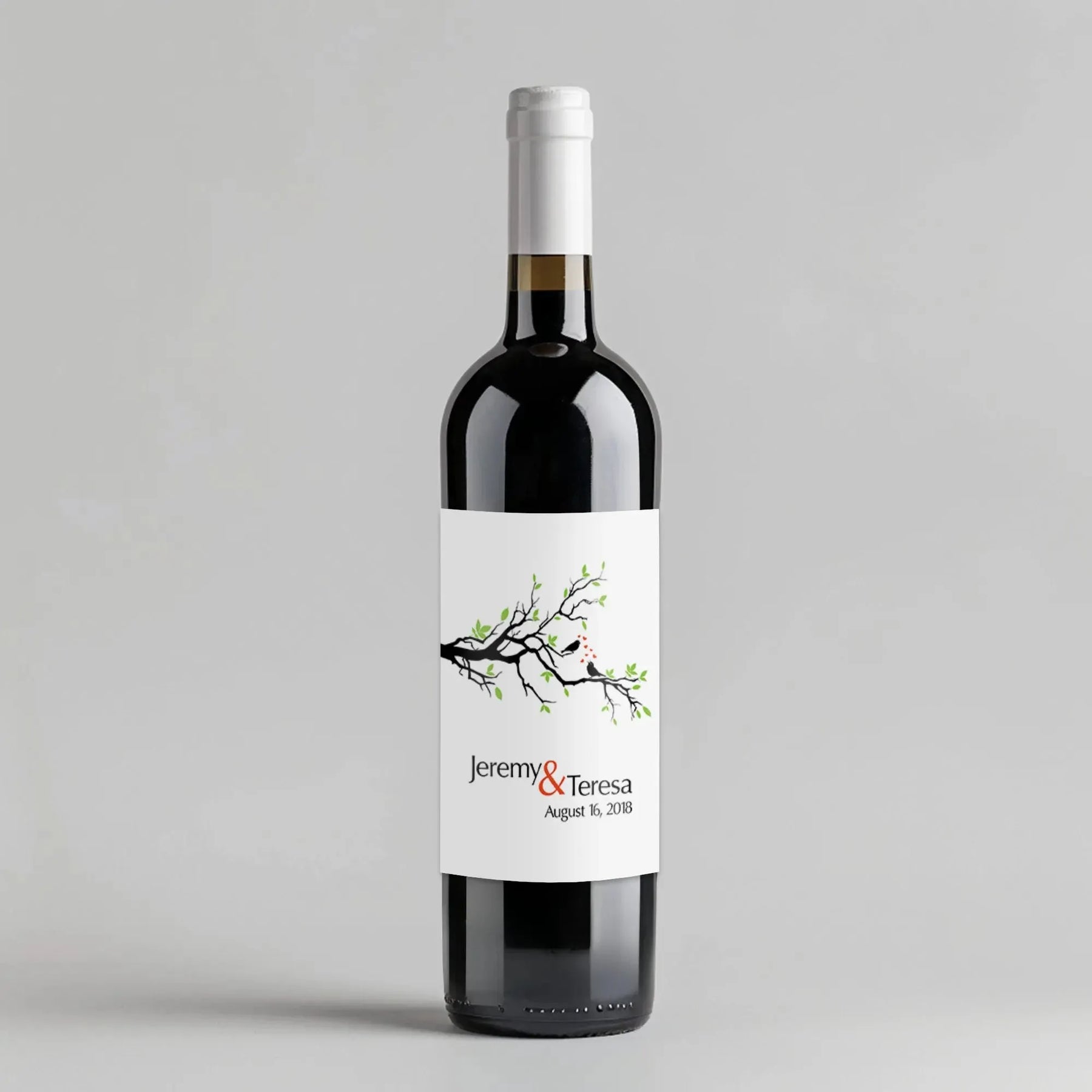 Add a chirpy touch to your wedding with the Birds Tree Wine Label. This playful label is perfect for adding a touch of humor to your special day. Celebrate with your lovebirds and add some personality to your wine bottles. Cheers!