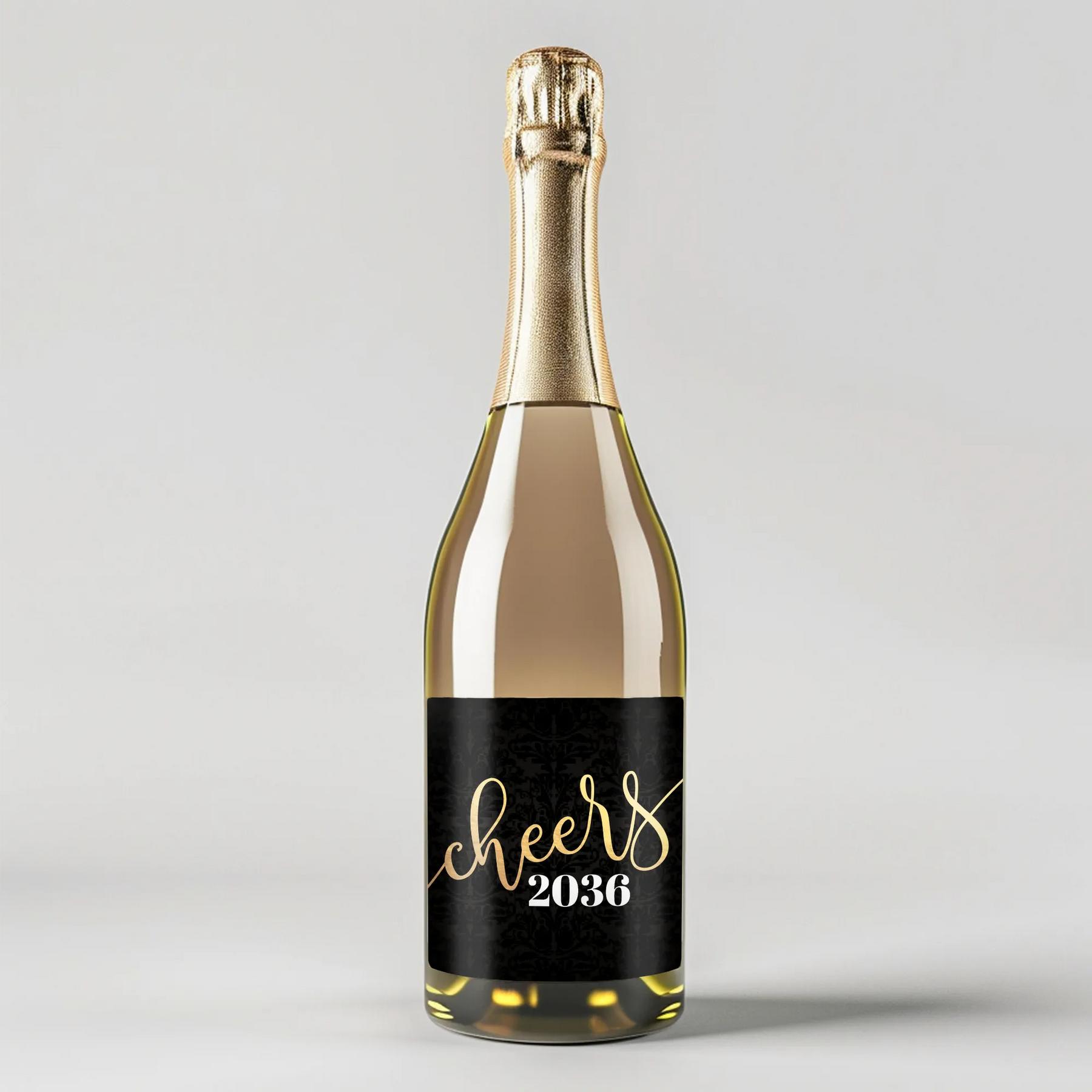 Celebrate in style with our personalized Black Damask Cheers Champagne Label. Add a unique touch to your special occasion and make it truly unforgettable. Cheers to your personalized touch!