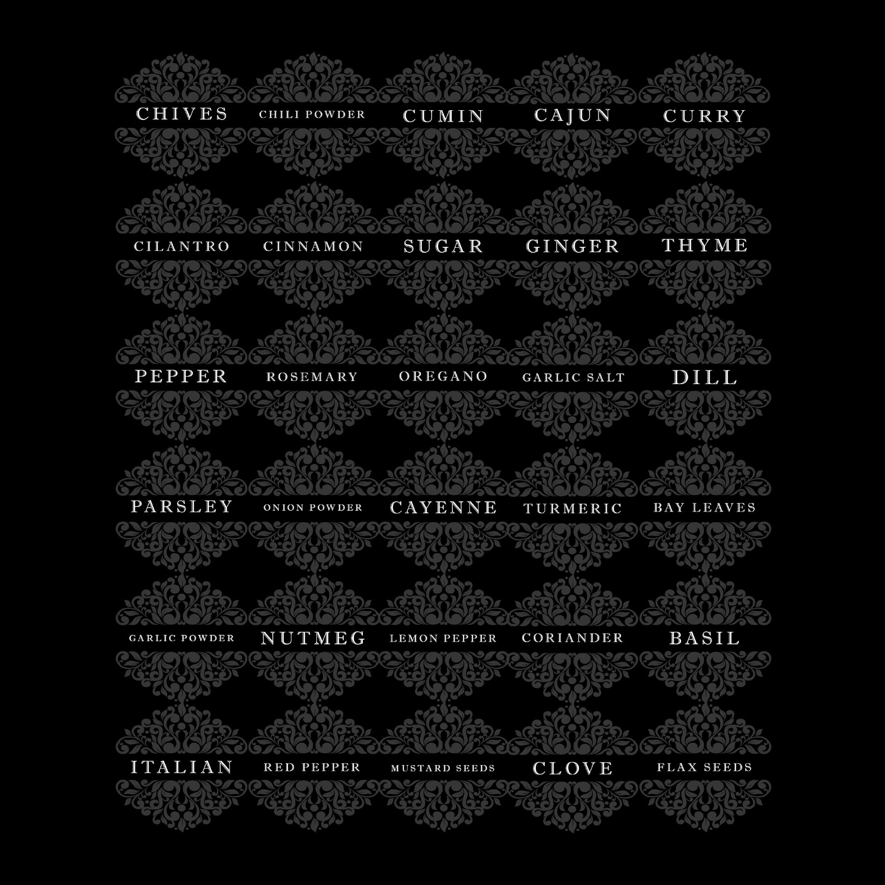 Bring a touch of traditional elegance to your pantry with this set of 30 Black Damask Spice Labels. The intricate floral pattern provides a sophisticated background for your herbs and spices, while the glossy finish adds a touch of luxury.