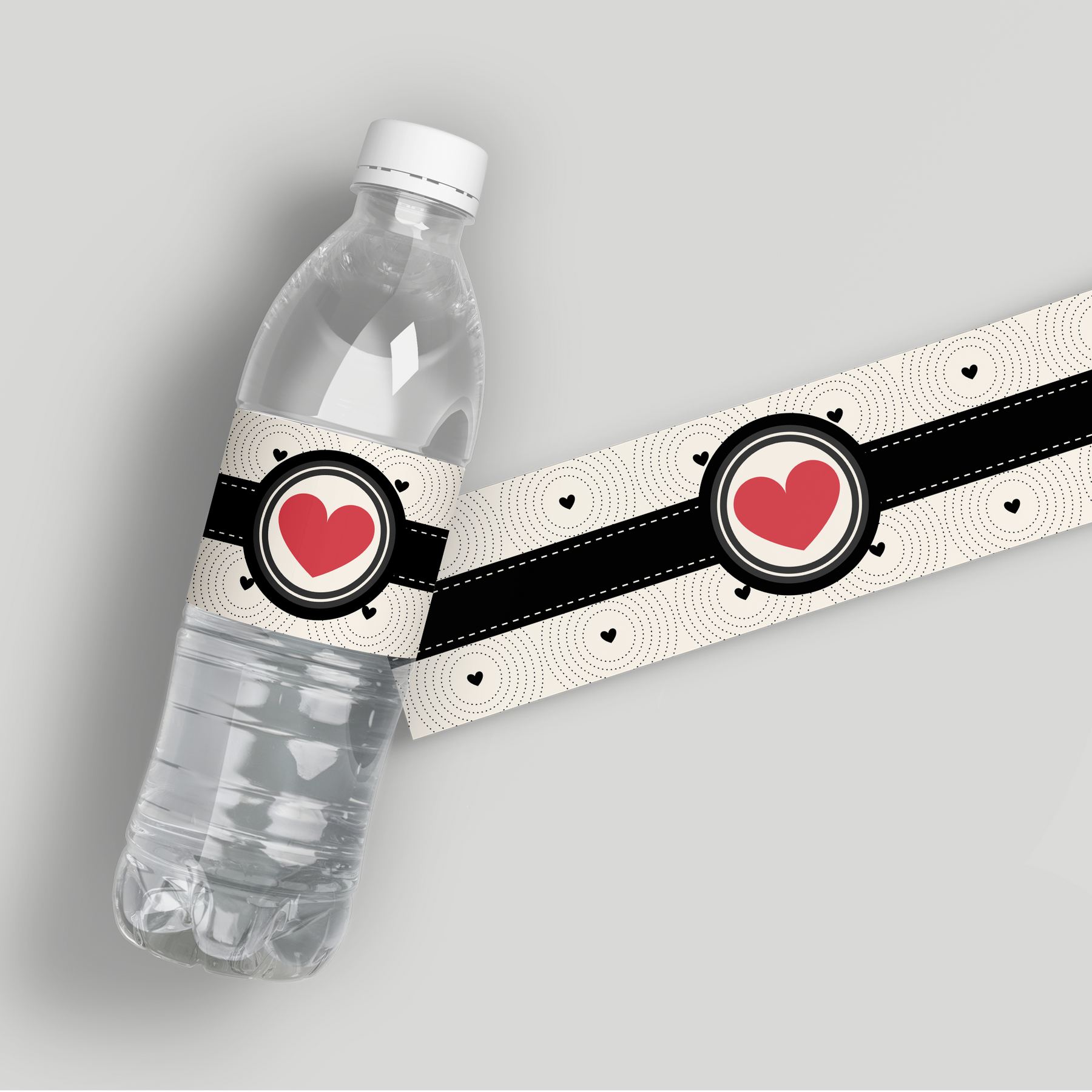 A chic, non-traditional welcome for a sophisticated Valentine's party. These custom water bottle labels feature a sleek black and white pattern (e.g., damask, chevron, or polka dot) with a subtle heart or love motif. They are the perfect favor for a modern, sophisticated Valentine's Day party or anniversary celebration. Printed on waterproof vinyl, they are fully ice-bucket ready.
