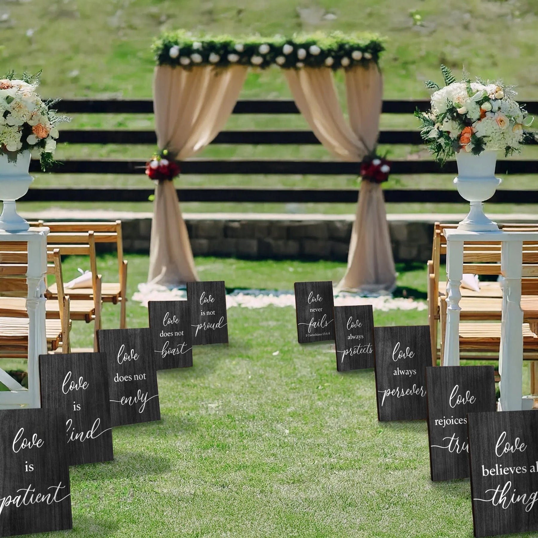 Set of 10 Wedding Aisle Signs – 1 Corinthians 13 "Love Is Patient, Love Is Kind"