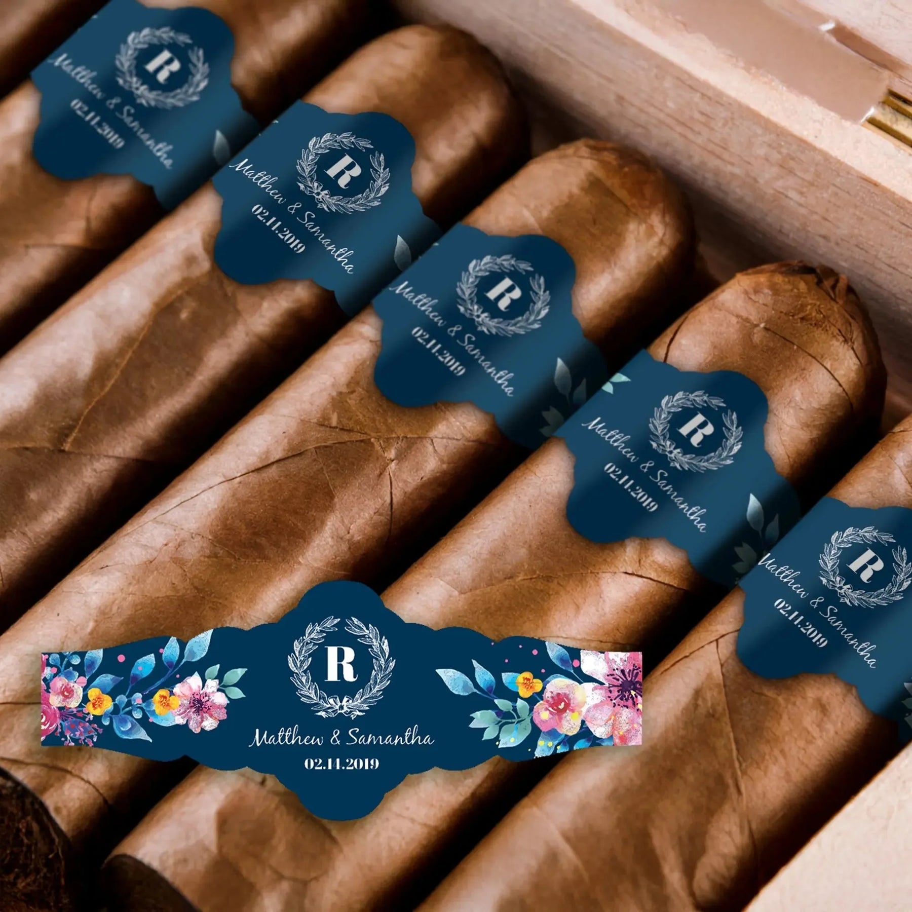Enhance the elegance of your wedding with our Blue Floral Wedding Cigar Bands. These beautifully designed bands feature delicate blue floral patterns, adding a romantic touch to your special day.