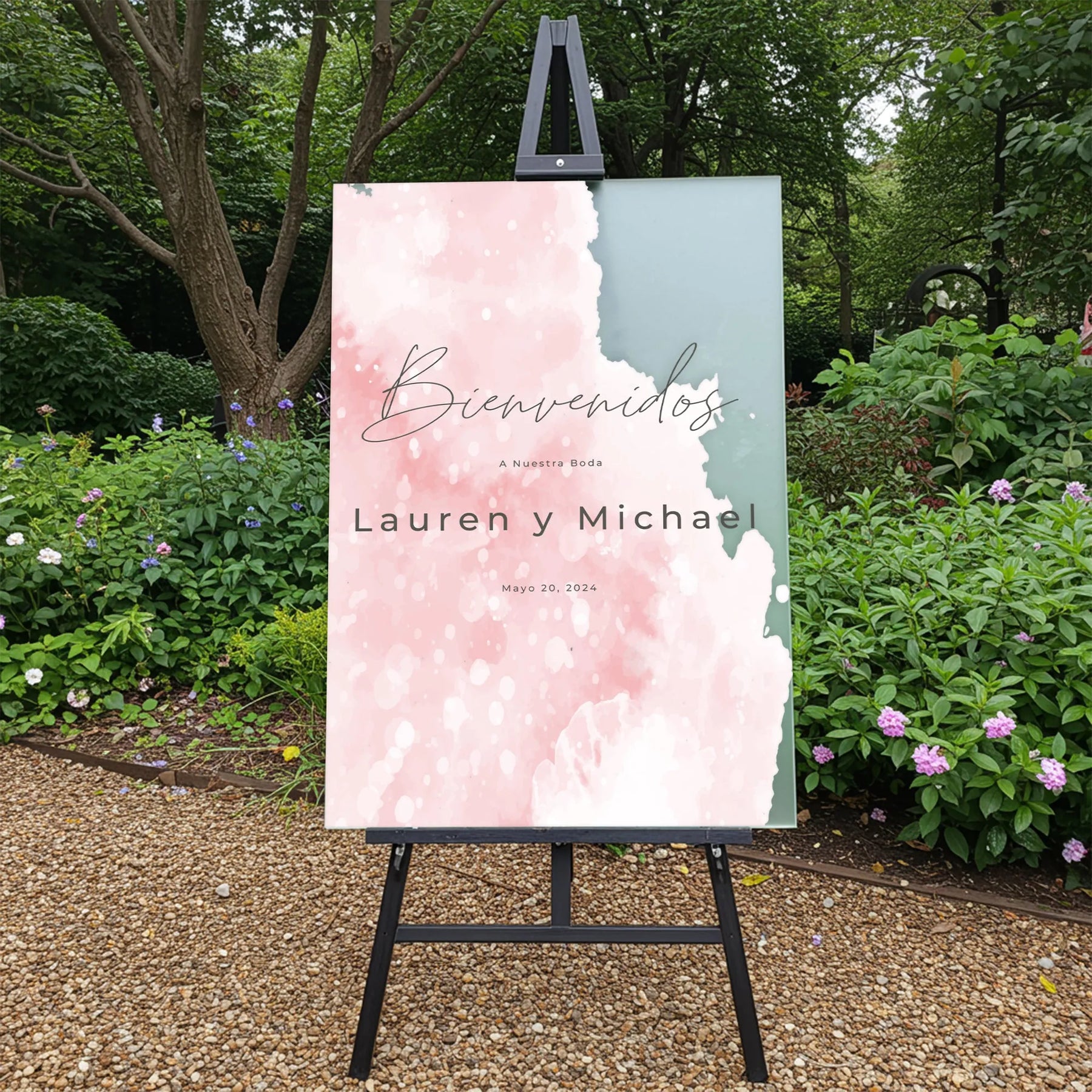 Bienvenidos a nuestra boda! Extend a warm, culturally rich welcome to your guests. Designed specifically for Spanish-speaking and bilingual celebrations, this custom sign features the phrase "Bienvenidos" surrounded by soft, romantic blush florals. Printed on premium shatterproof acrylic, it combines cultural pride with modern elegance, setting a loving tone for your ceremony or reception.