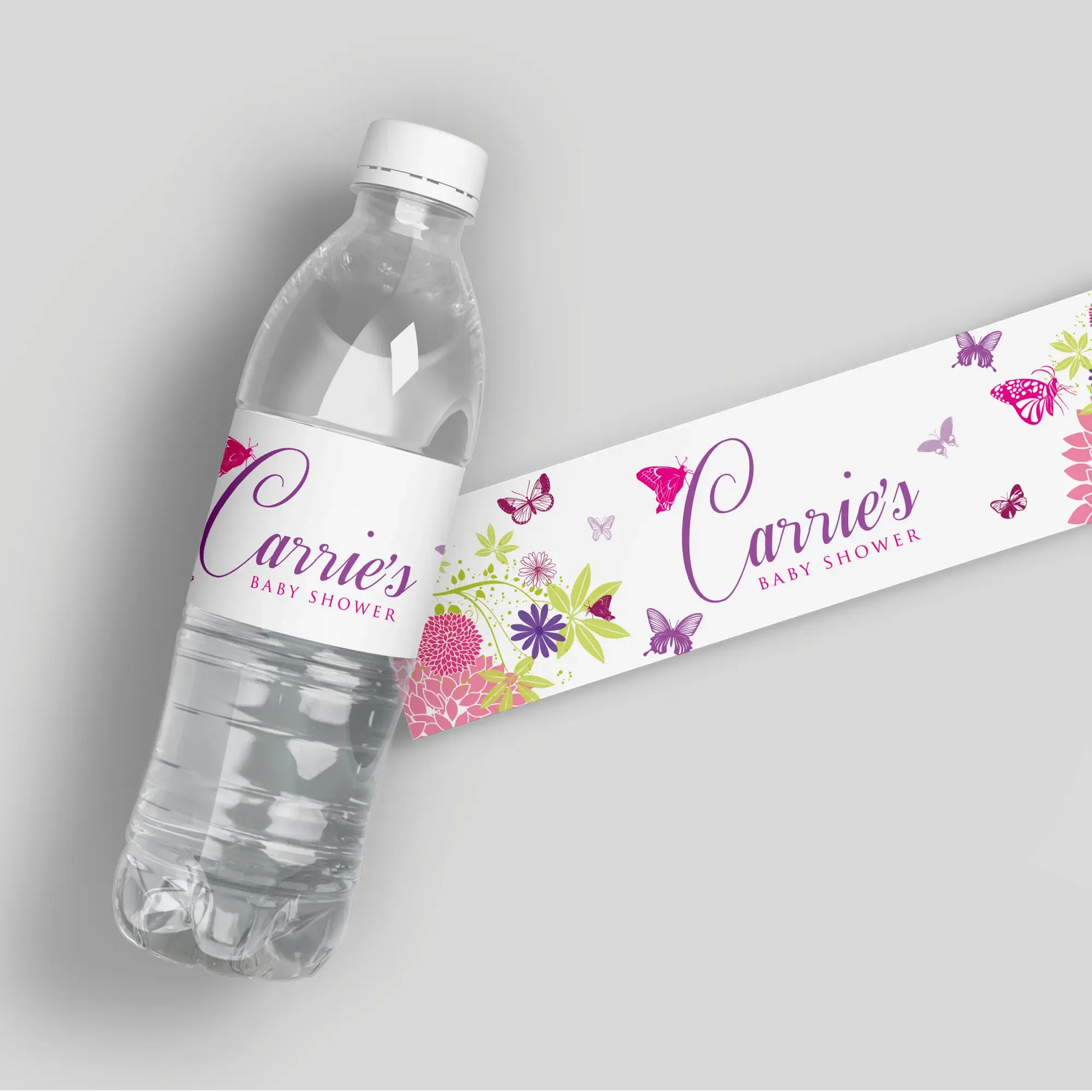 Add a touch of whimsy to your baby shower with Butterfly Flower Baby Shower Water Bottle Labels. These beautiful labels feature delicate butterfly and flower designs, perfect for celebrating the upcoming arrival. Personalize with names and dates for a charming event.