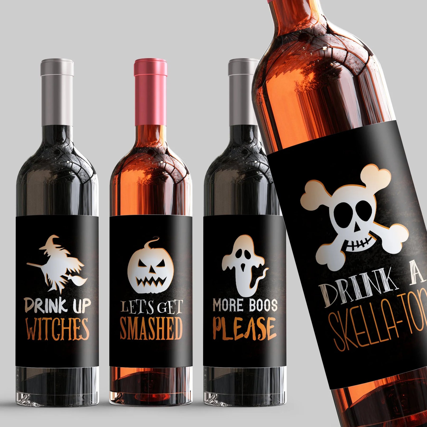 Make your Halloween party extra special with our Clever Halloween Wine Label Set. Each set includes a black label with a spooky phrase, like "more blood please," and a festive Halloween print. Perfect for gifting to your friends or using at your own gathering. Cheers to a hauntingly good time!
