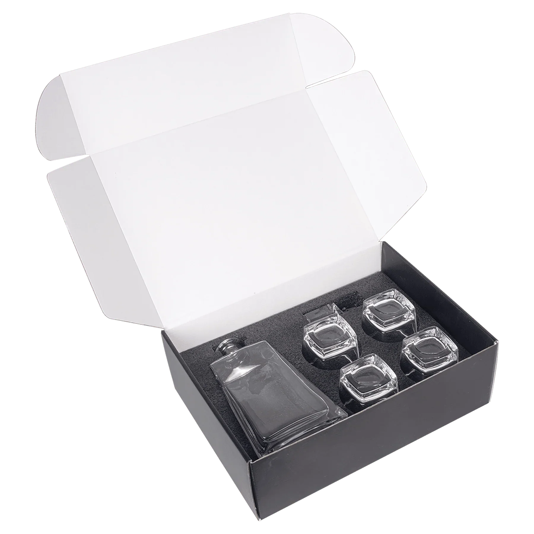 Each set can be custom laser engraved with a logo, name, or special message, making it ideal for corporate gifting, weddings, birthdays, or bar collections. Presented in an elegant black gift box, this tequila decanter set is ready to impress right out of the package.