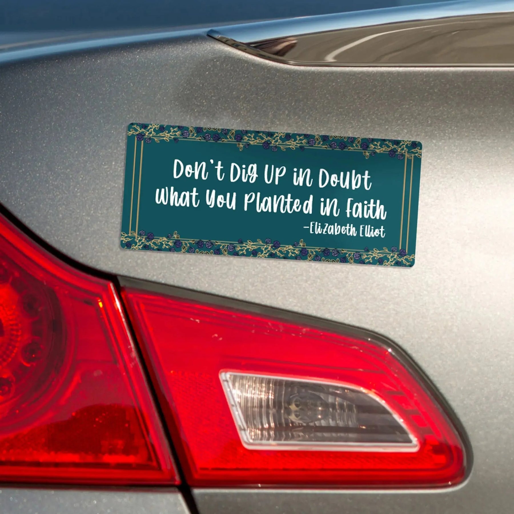 Put this playful magnet bumper sticker on your car to remind yourself to trust your intuition in life. With a fun floral design and clever wordplay, it's sure to make you smile (and think) as you drive along. Don't hesitate, plant your faith and watch it bloom!