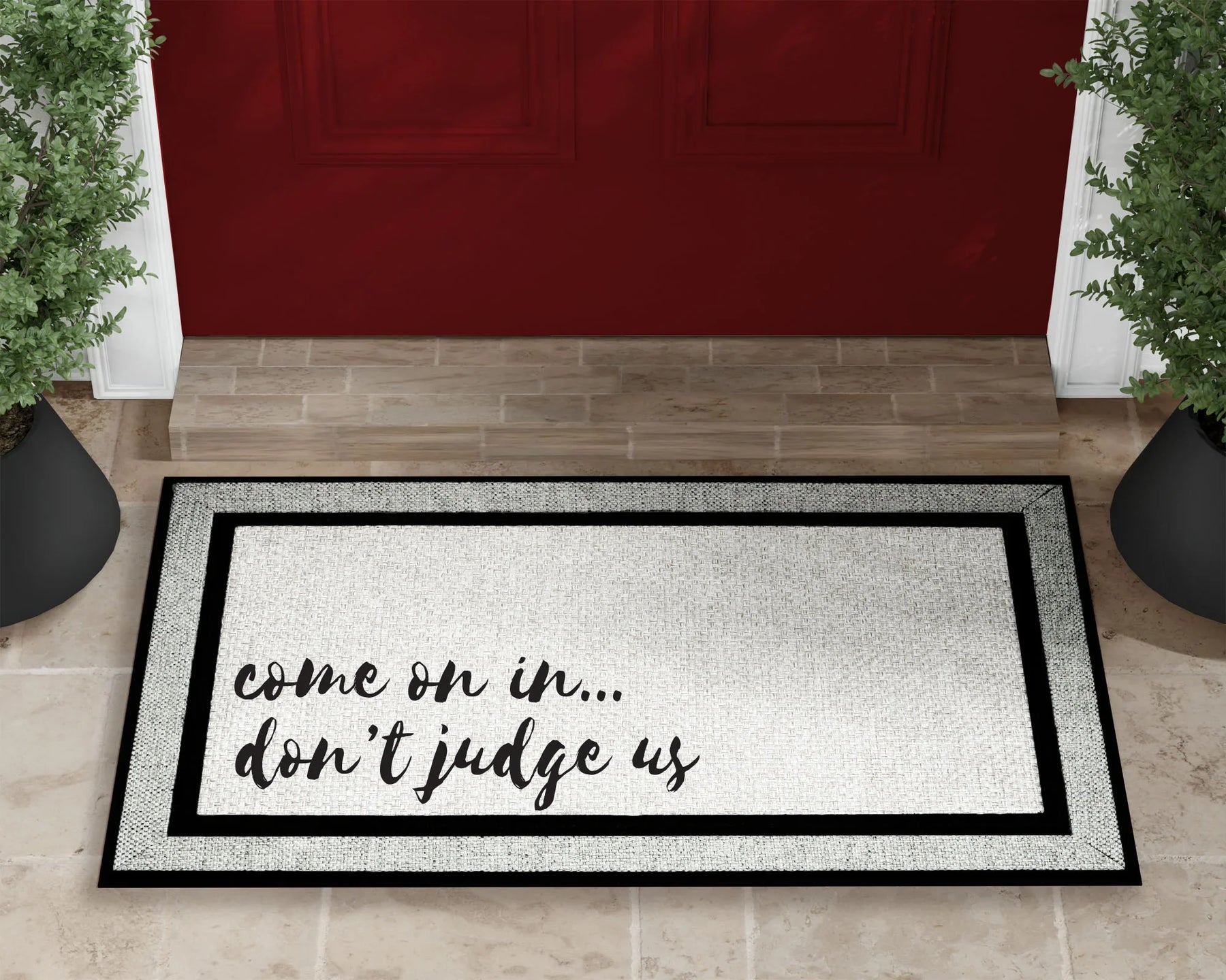 Start your guests’ visit with a smile using this playful "Don't Judge" welcome mat. Its cheeky message sets a lighthearted tone, making everyone feel at ease before they even step inside. Durable and easy to clean, it’s perfect for adding a fun touch to your entryway while keeping dirt at bay.