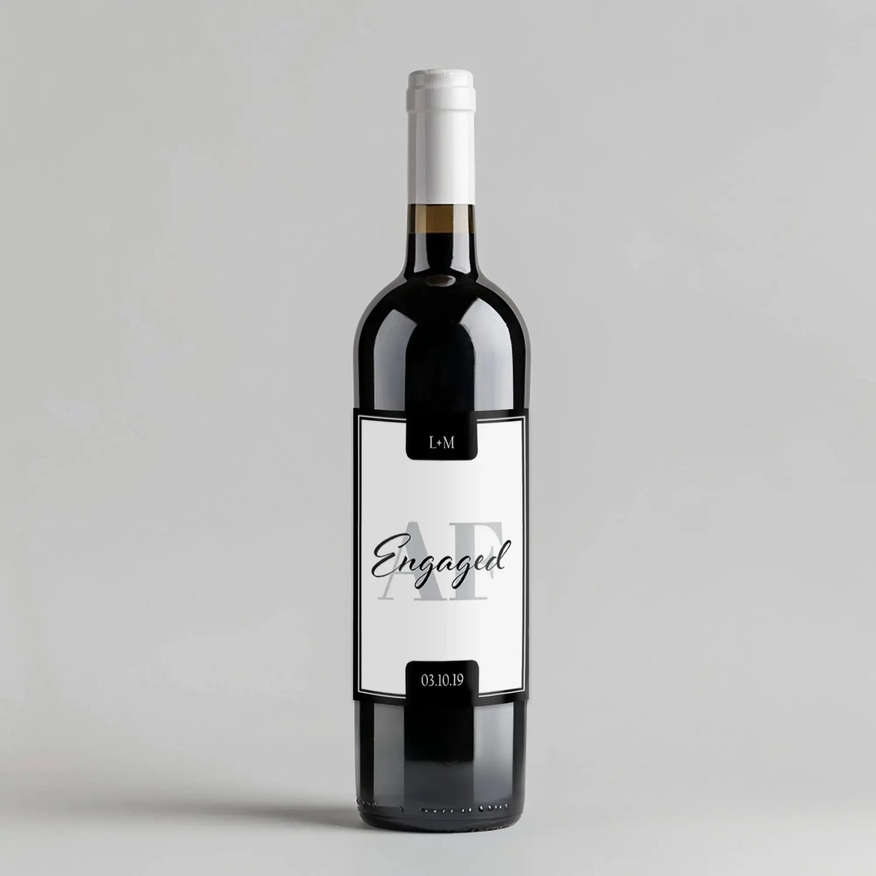 Celebrate your engagement with our Engaged AF Wine Label. Personalized with your names and date, this white label in a sleek black frame will add a touch of fun to any wine bottle. Perfect as a gift or for your own celebration, this label is a must-have for engaged couple.