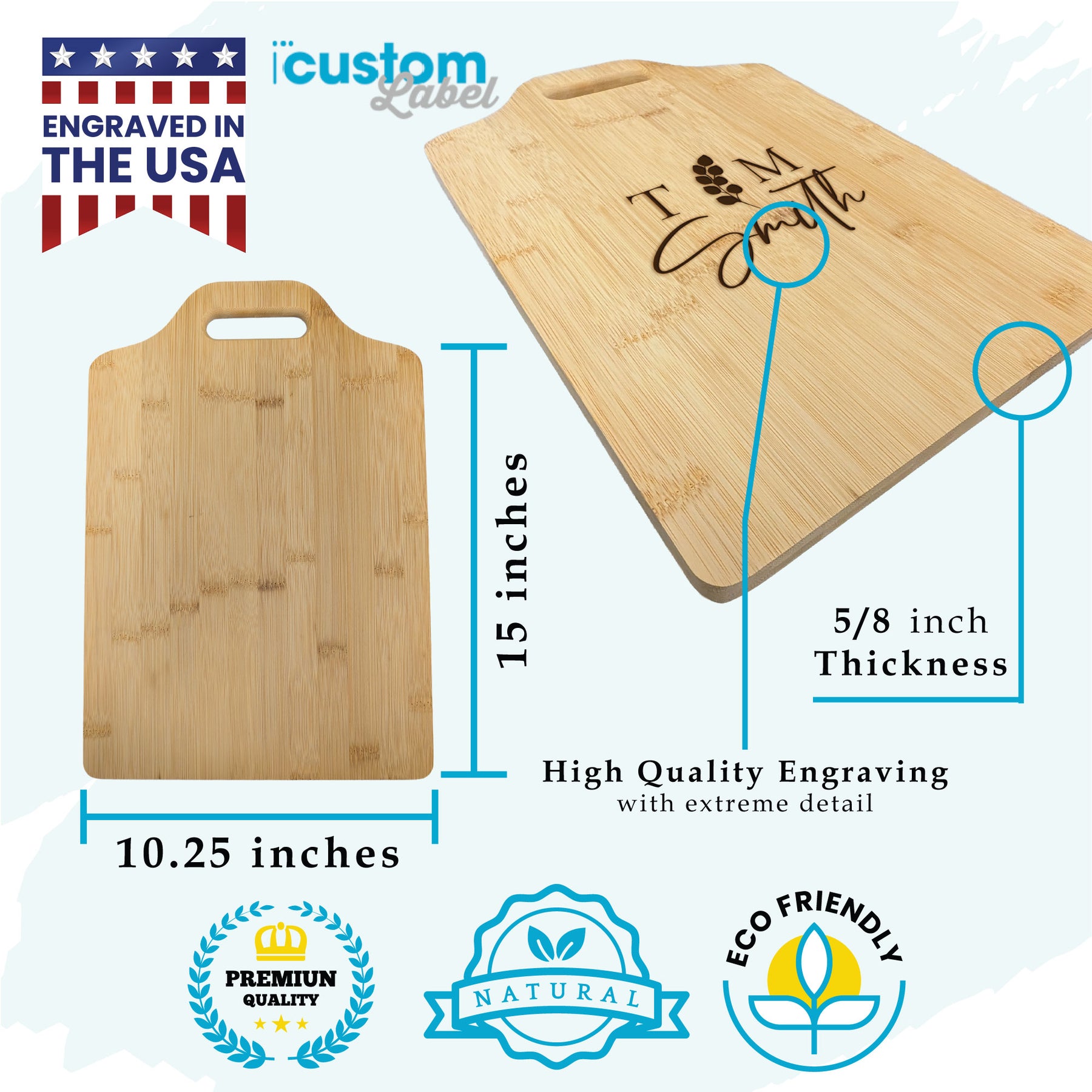 Elevate your kitchen with this sophisticated bamboo cutting board, personalized with your family's initials and last name. Constructed from eco-friendly bamboo, this versatile board delivers reliable performance for everyday food preparation while serving as an elegant display piece. The custom engraving creates a refined aesthetic that reflects your family's identity, making it equally suited for practical use or as a distinguished housewarming gift. A timeless addition that merges culinary functionality with personalized style.