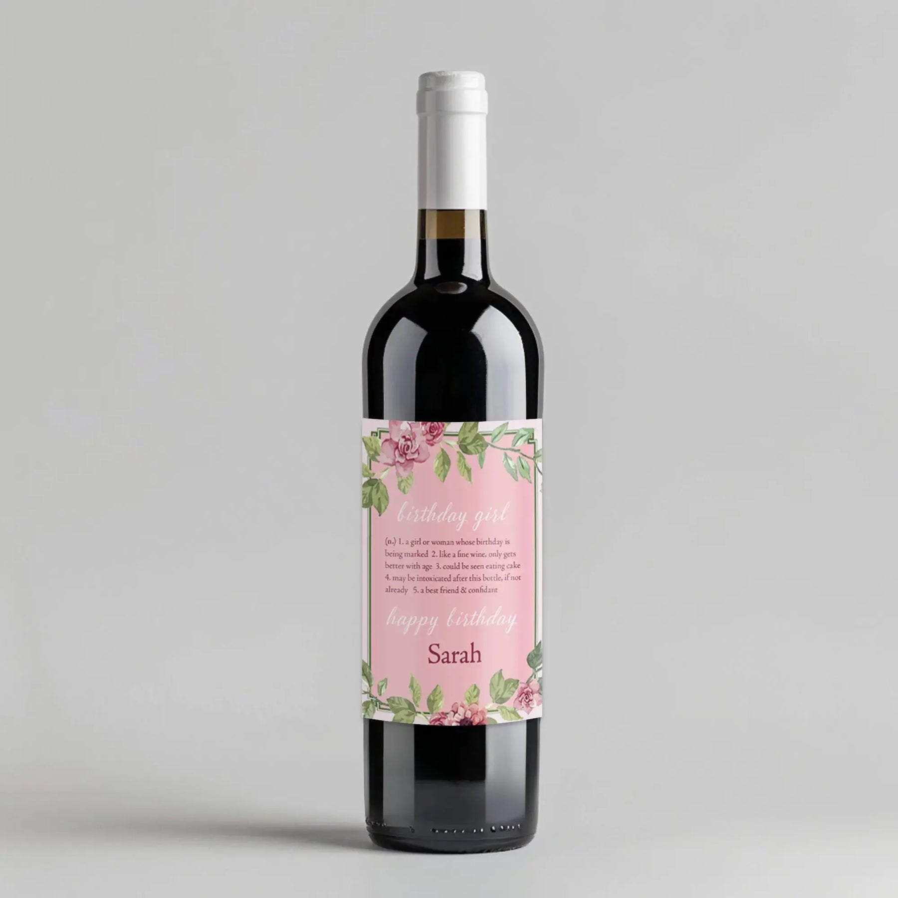Make the birthday girl feel special with our Floral Girl Birthday Wine Label. Add a personalized touch to her celebration with this unique wine label. Perfect for any wine lover's birthday. Cheers to the birthday girl!