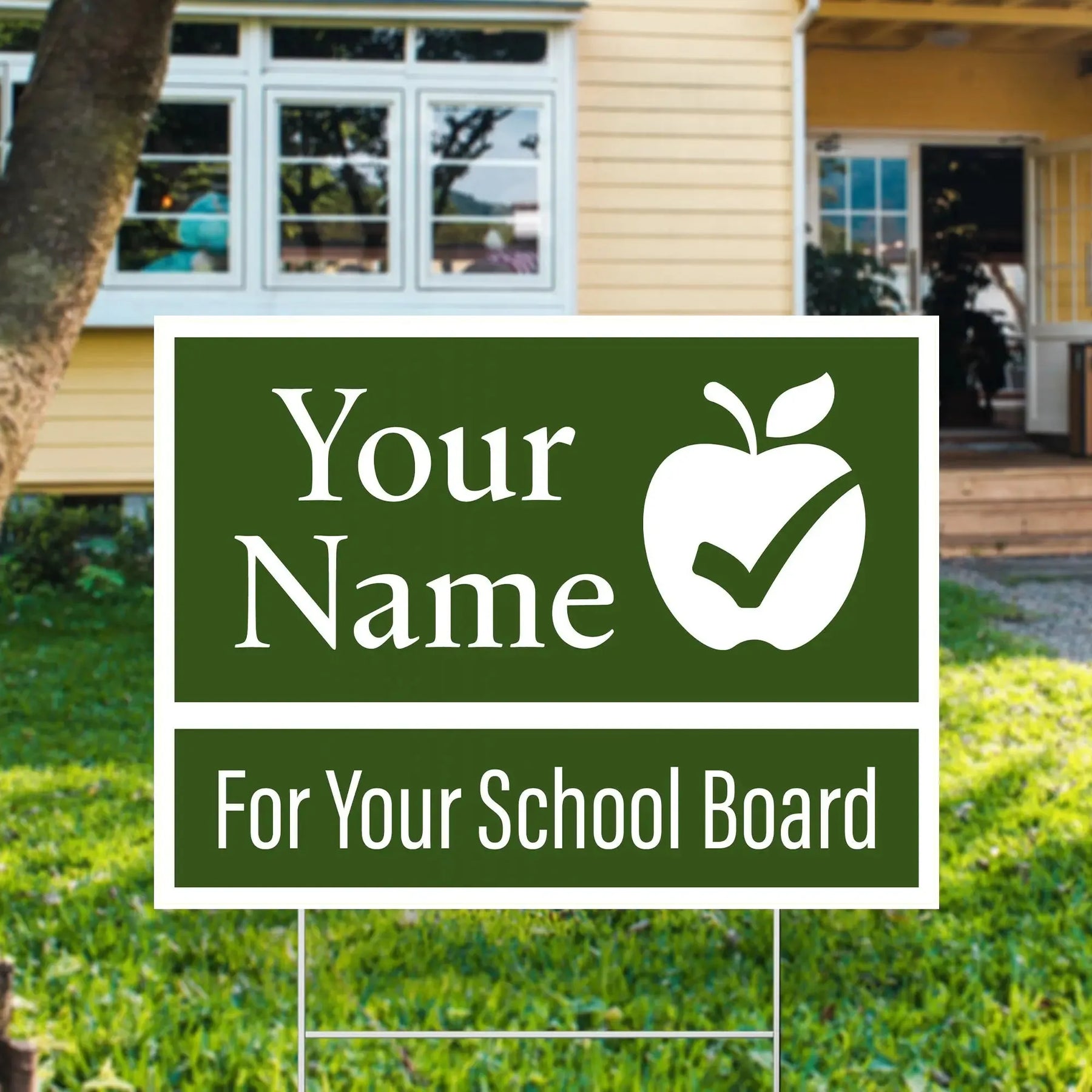 Show your support your favorite candidate with our Green School District Political Yard Signs! Personalize your sign with your name and proudly display the school board and apple icon. Spread the word and make a statement with these eye-catching signs.