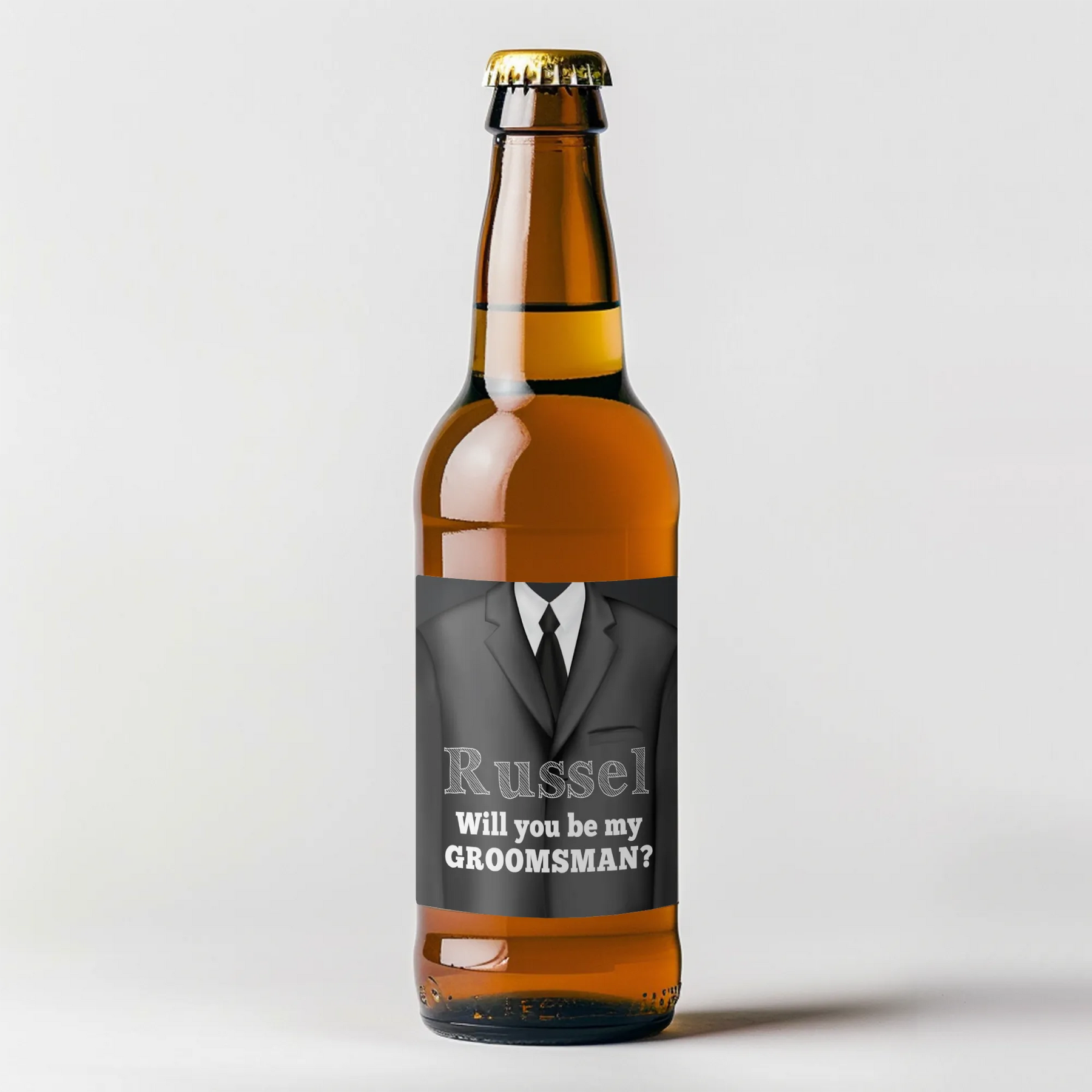 Toast to the groom with this one-of-a-kind Groomsman Tux Beer Label. Transform any brew into a personalized gift for your wedding party. Cheers to a unique and playful touch to your special day! (Beer not included).