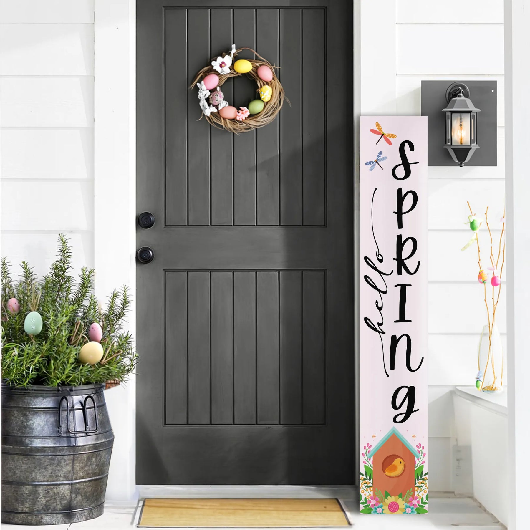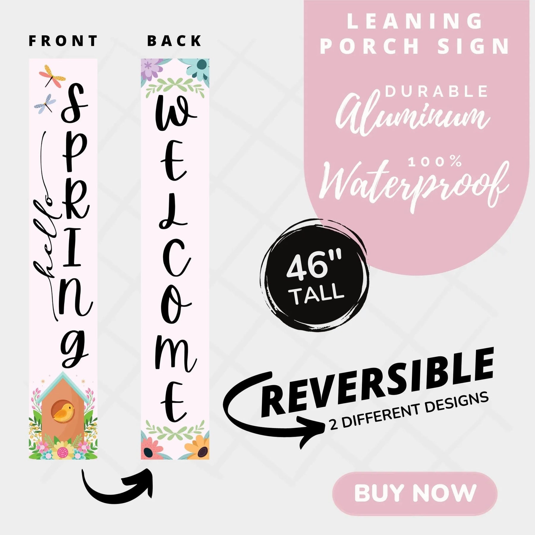 Welcome the season with a statement! Make a bold statement to your visitors with this "Hello Spring" porch sign. Put a smile on their faces with this unique and fun sign that will add life and some eye-catching color to your home. Make it a "leaner" and add that extra little something that will spark joy!
