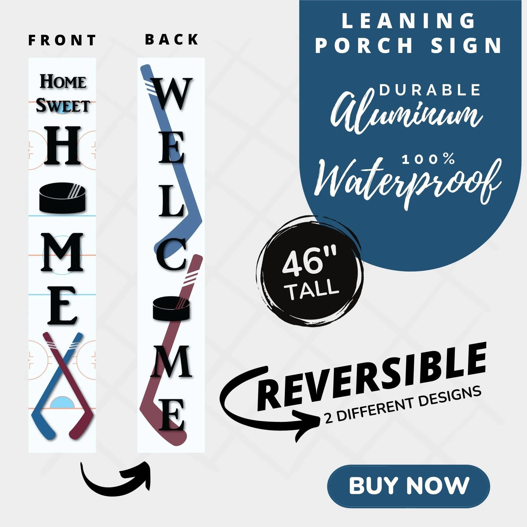 Home is where the ice is! A sporty welcome for hockey fans. Our custom Hockey Home Porch Leaner Sign features a fun, energetic hockey motif (sticks, pucks, or rink graphics) and a sporty welcome message. Printed on both sides with contrasting designs, this sign offers maximum value and celebrates your family's love for the game. Made from durable, rustproof Aluminum Composite Material, it is built to withstand outdoor elements.