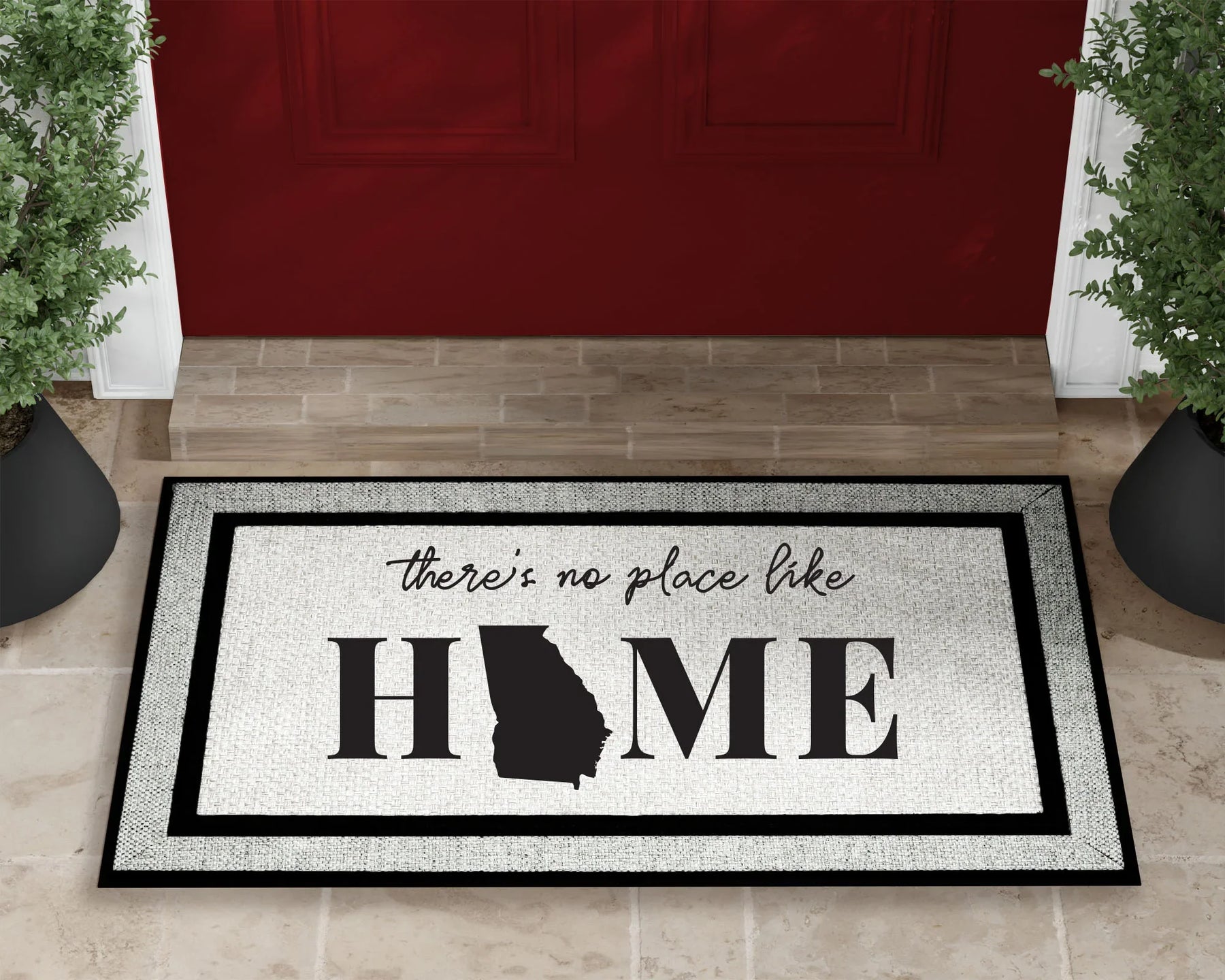 Welcome guests with a playful touch using this Home Georgia Door Mat. Featuring the state of Georgia cleverly shaped as the "O" in "HOME," it adds charm and local pride right at your doorstep. Perfect for anyone who knows there’s truly no place like home in the Peach State! Durable and inviting, it’s a fun way to make your entryway uniquely yours.