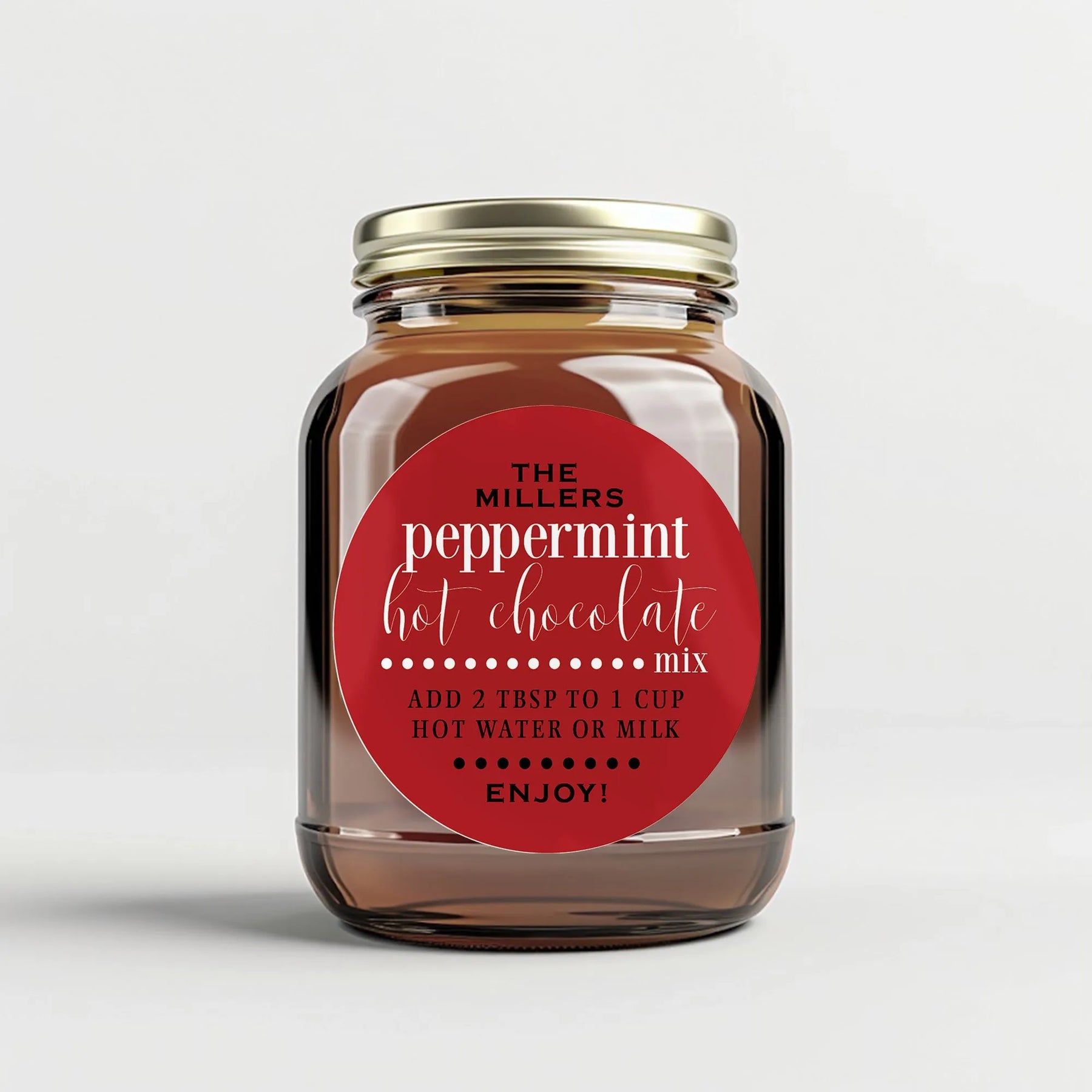 Label your festive treats with our Hot Chocolate Peppermint Canning Labels. Featuring a delightful peppermint design, these labels are perfect for holiday gifts.