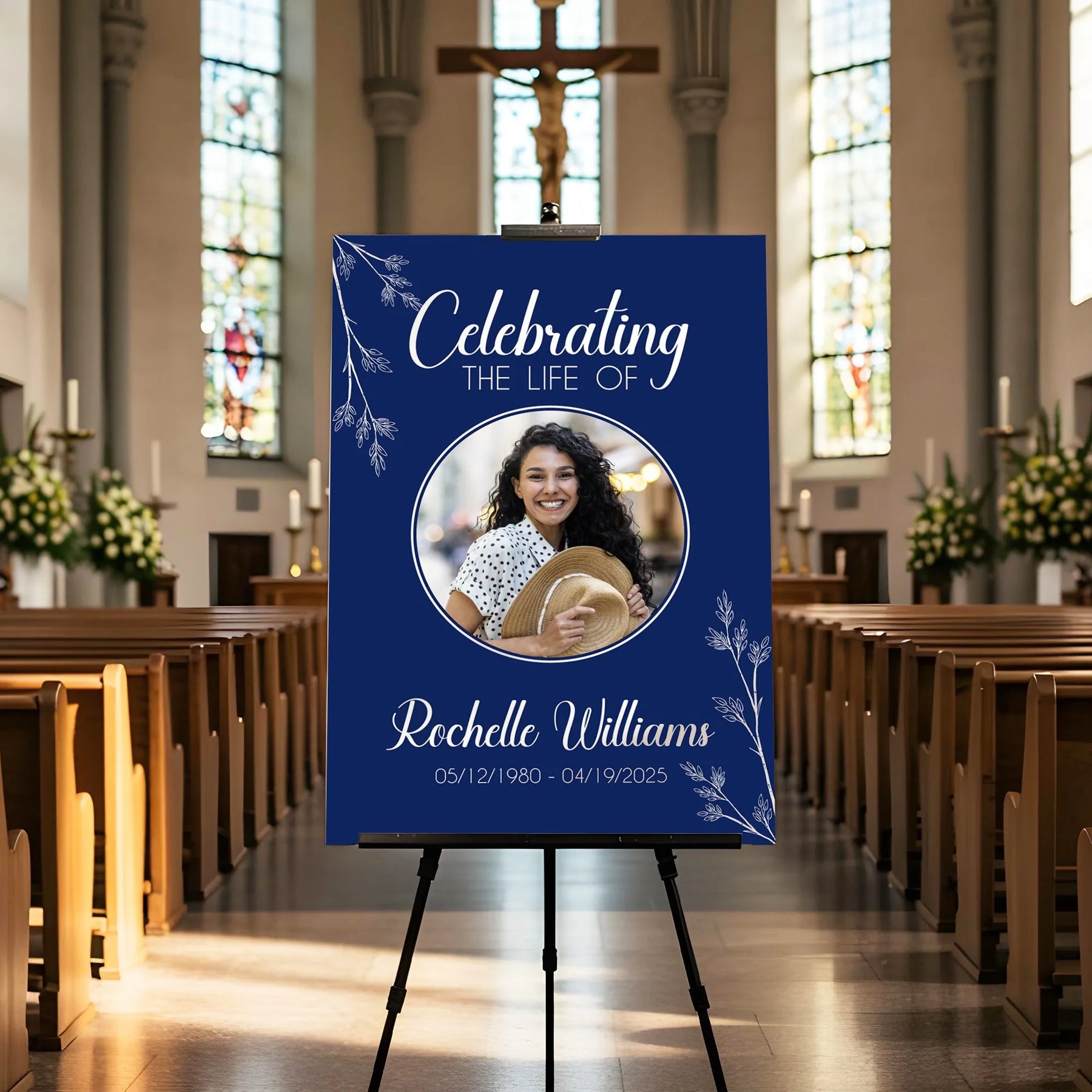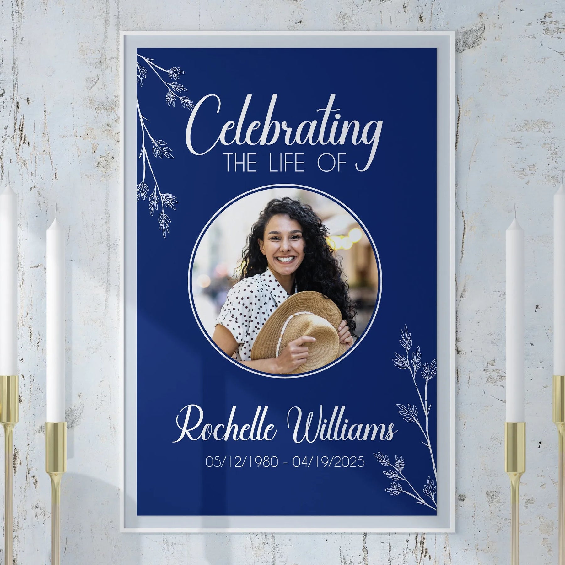 Honor the life of your loved one with this elegant In Loving Memory Memorial Photo Poster, featuring a navy background and delicate floral stems. Personalize this tribute with a photo and meaningful dates, such as the birth and passing date, to celebrate a cherished life. The design exudes both simplicity and beauty, making it a perfect tribute for any memorial or keepsake display.