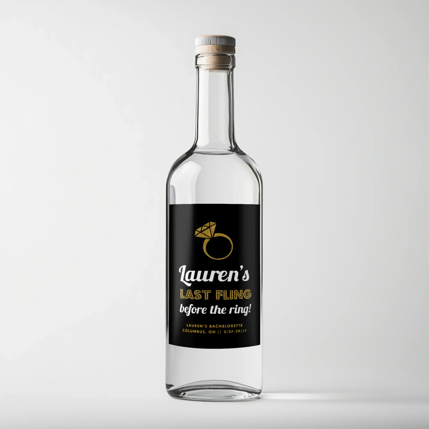 Make the last fling before the ring unforgettable with our glitter bachelorette liquor label. Add a special touch to any party drink and make it the bride-to-be's favorite. Perfect for bachelorette parties, this label is sure to make the night sparkle!