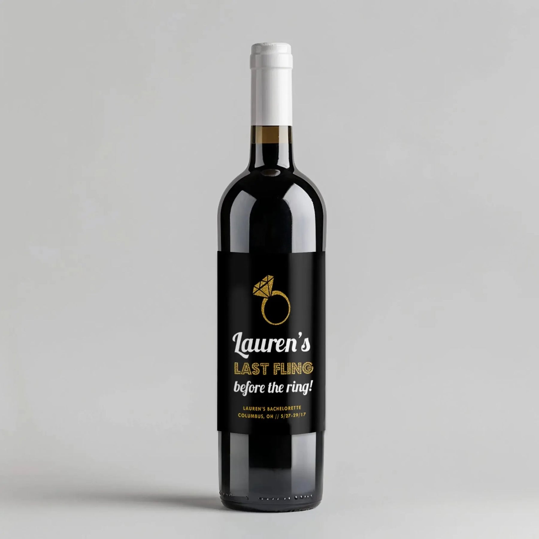 Spice up your bachelorette party with our Last Fling Glitter Wine Label. This quirky label will add some sparkle to your wine bottles and give the bride-to-be one last fling before the ring. Cheers to the bride and her last single night!