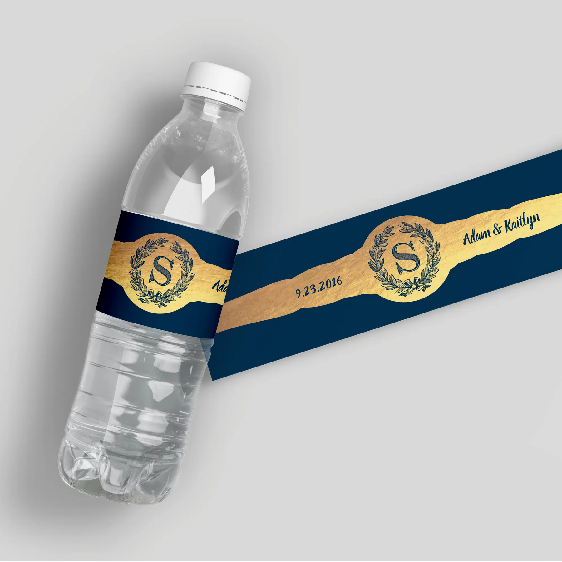 Celebrate your wedding in style with Navy Gold Monogram Wedding Water Bottle Labels. Featuring elegant navy and gold monogram designs, these labels are perfect for adding a sophisticated touch to your wedding reception. Customize with initials and wedding dates for a personal touch.