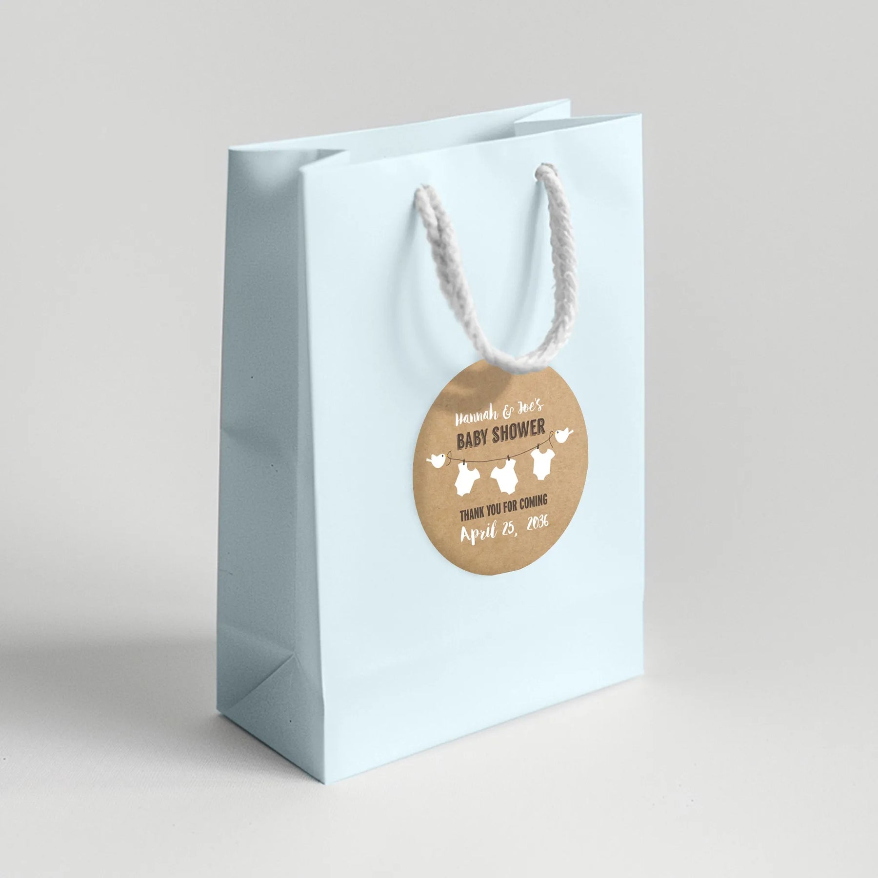 Personalize your baby shower favors with our adorable Onesie Birds Favor Labels! These personalized labels add a special touch to your event and make a great keepsake for guests. Create a unique and memorable experience with these charming labels.