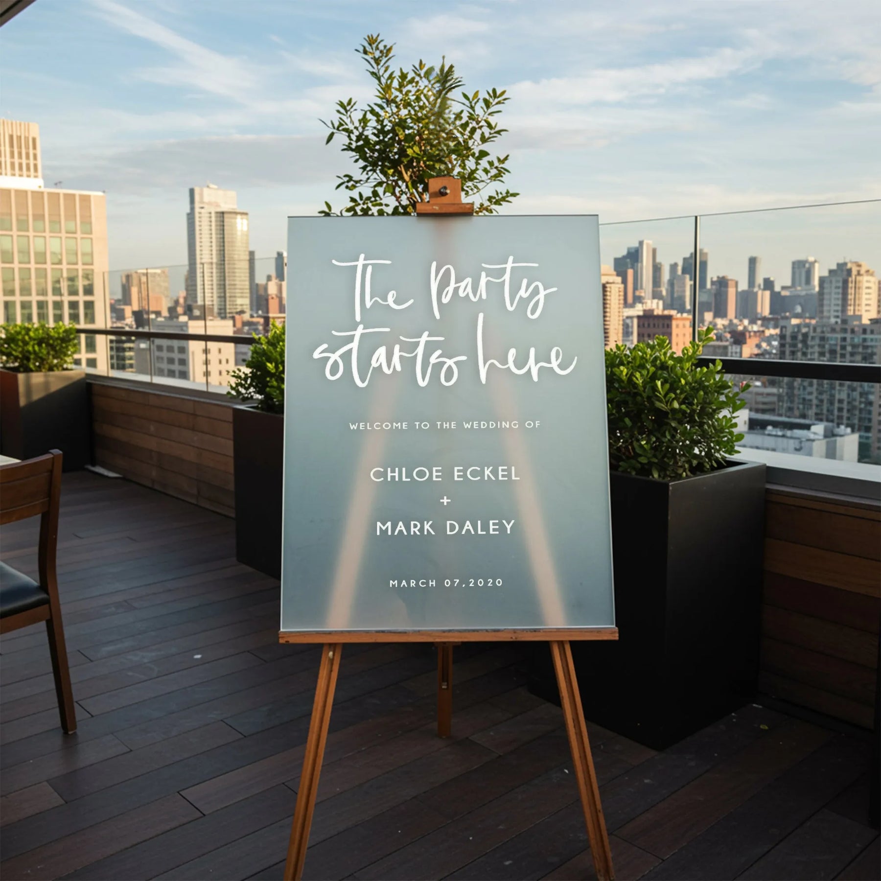 This sign lives for the party! Place it at the entrance to the reception ballroom, leaning against the bar, or right next to the DJ booth/Dance Floor.