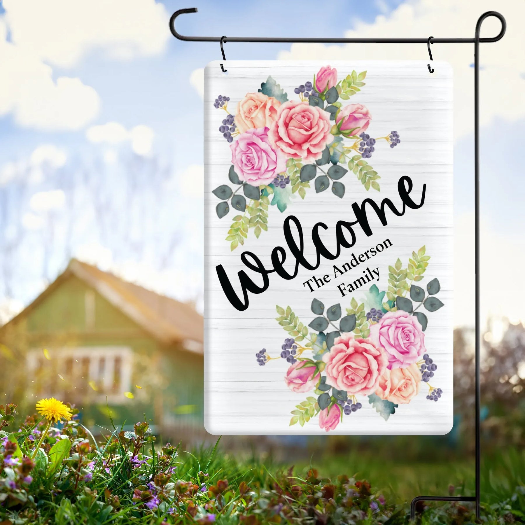 Roll out the welcome mat and show off your unique style with our Personalized Roses Welcome Home Metal Garden Flag! Add your name and a touch of charm with beautiful roses. The perfect way to greet your guests (and maybe even make your neighbors a bit envious)!