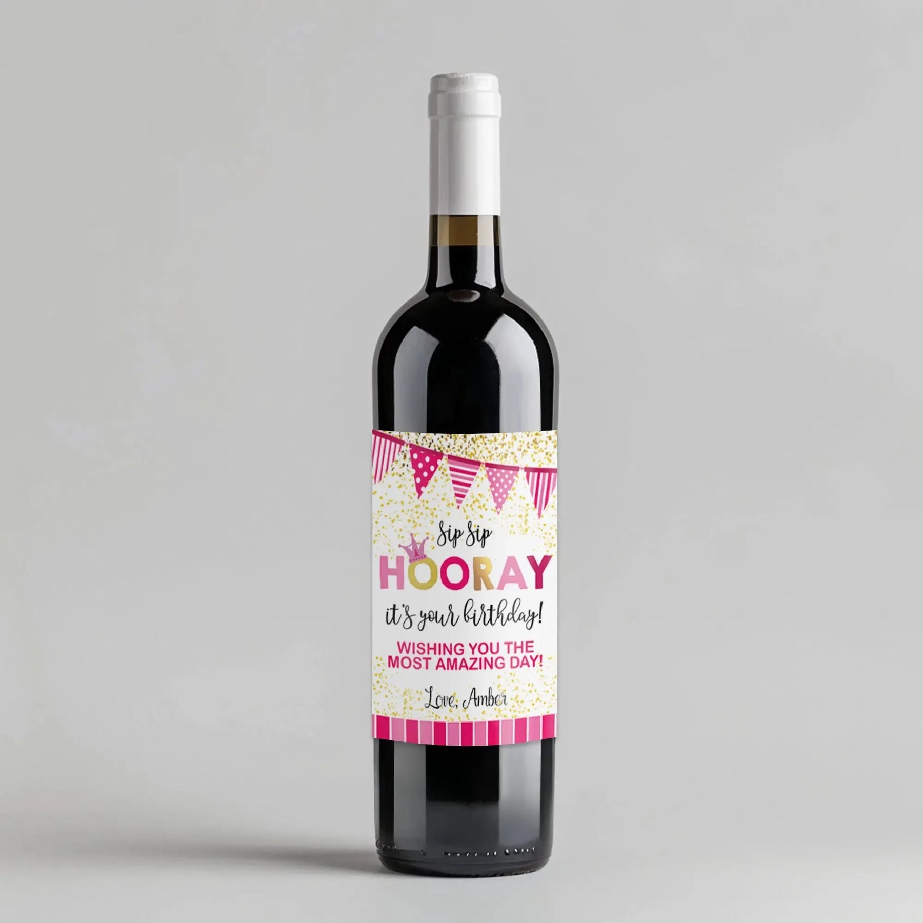 Let's cheers to another year with our Pink Party Birthday Wine Label. With the playful message "hooray it's your birthday," this label adds a fun touch to any celebratory bottle. Toast to good times and good wine with this quirky label.