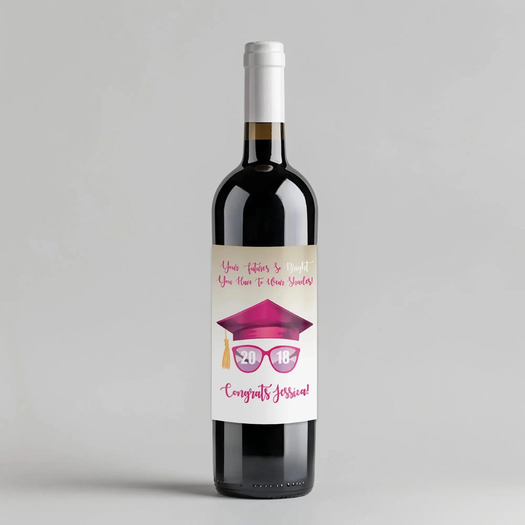 Elevate your graduation celebration with our Pink Shades Graduation Wine Label. This label adds a touch of sophistication to any bottle, making it the perfect addition to your event. Make your graduation gift personal and memorable with our custom wine label. Cheers to your accomplishments!