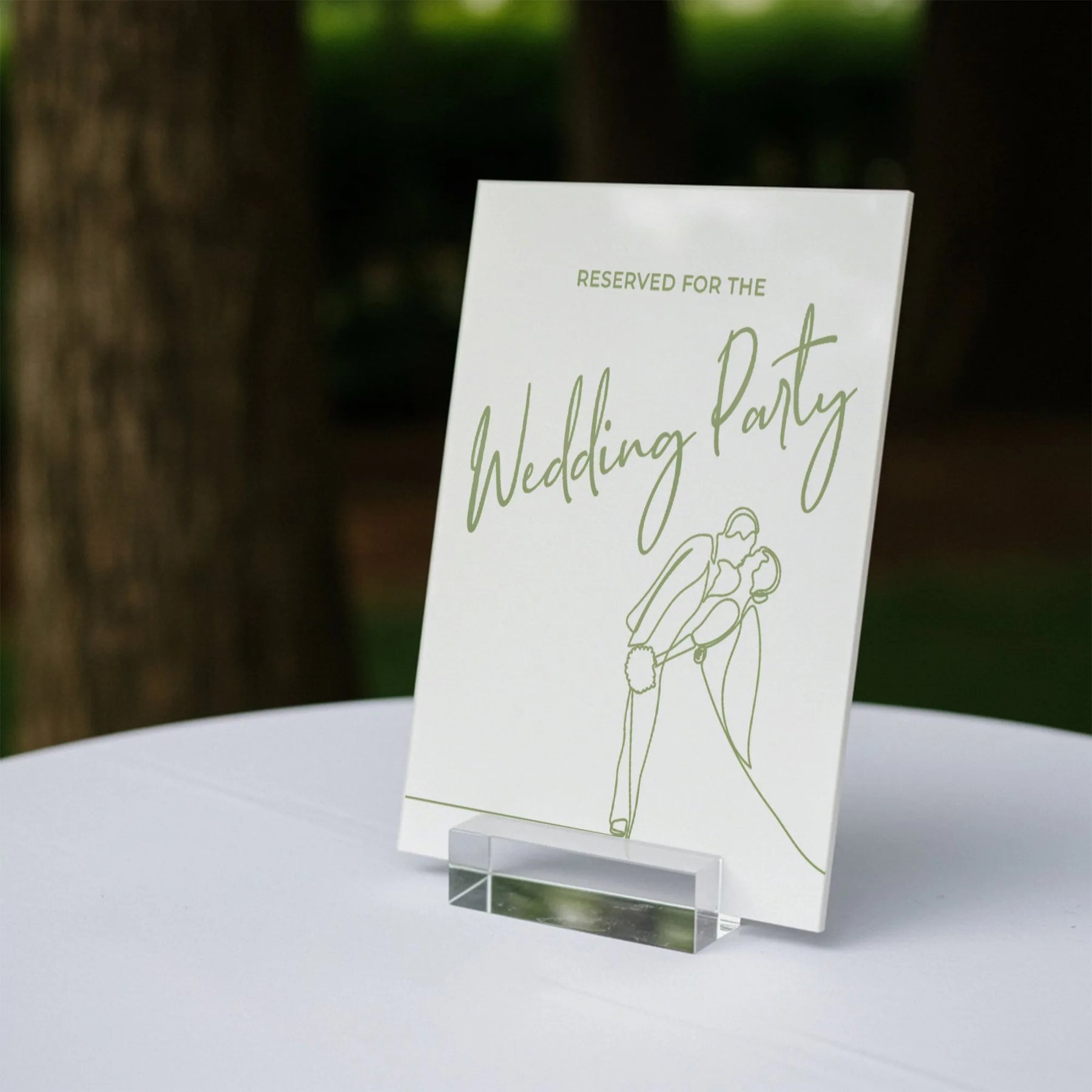 Claim your spot in style with our Reserved Wedding Table Sign. Made of durable acrylic, this sign will let everyone know exactly who's special day it is. Perfect for adding a touch of elegance to your wedding decor.