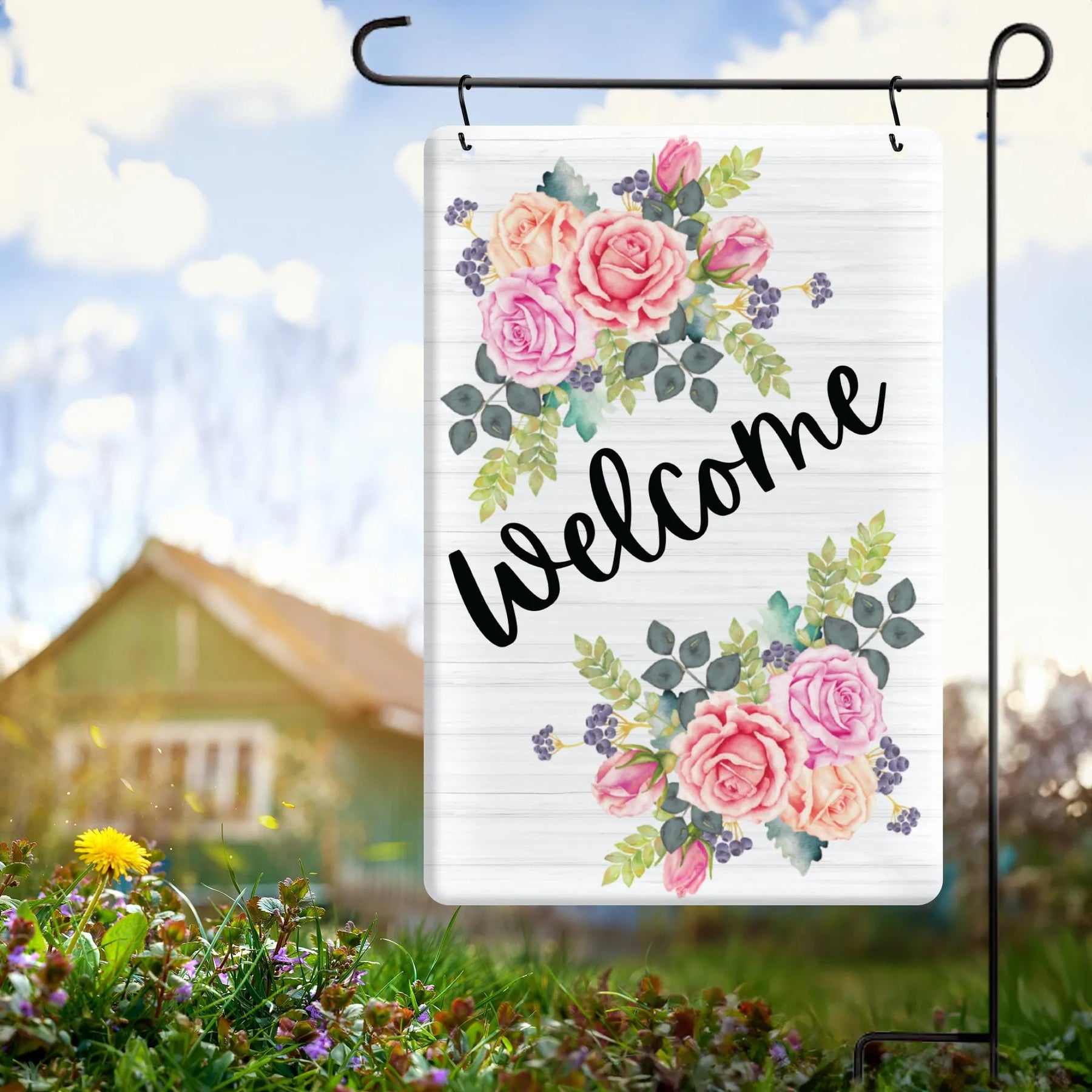 Welcome with bright roses on this metal flag, perfect for any garden! With its eye-catching design, your guests will feel like they're entering a beautiful oasis. Let these roses bring a touch of whimsy and charm to your outdoor space.