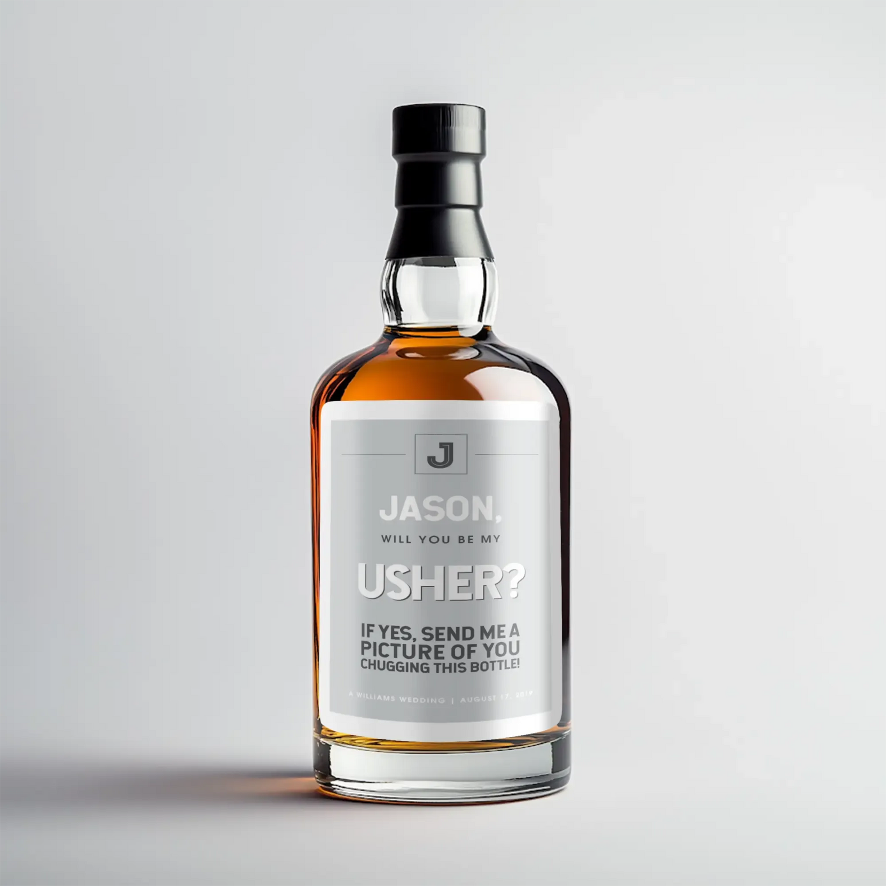 Introducing Send Photo Usher Liquor Label - the perfect way to bring some fun and personality to your next party! With this unique label, you'll be able to add a personal touch to your favorite bottle of liquor. Get ready to usher in a good time!