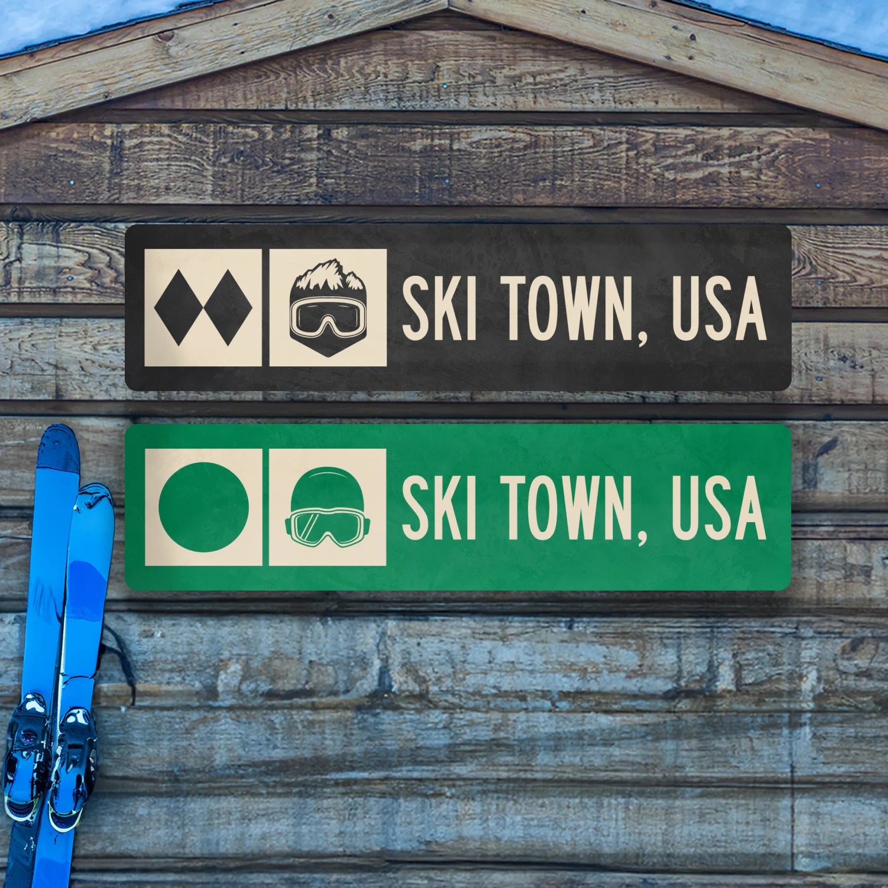 Looks like it was just mounted by the Mountain Safety Team. Bring the crisp, official aesthetic of a freshly marked slope home with this custom "Ski Town" metal sign. Designed to be a perfect replica of authentic resort markers (featuring the Green Circle, Blue Square, or Black Diamond), this sign is personalized with your favorite mountain or destination name. Printed on heavy-duty, rust-proof Aluminum Composite (ACM), it’s built to withstand the snow, ice, and extreme cold of any major ski region.