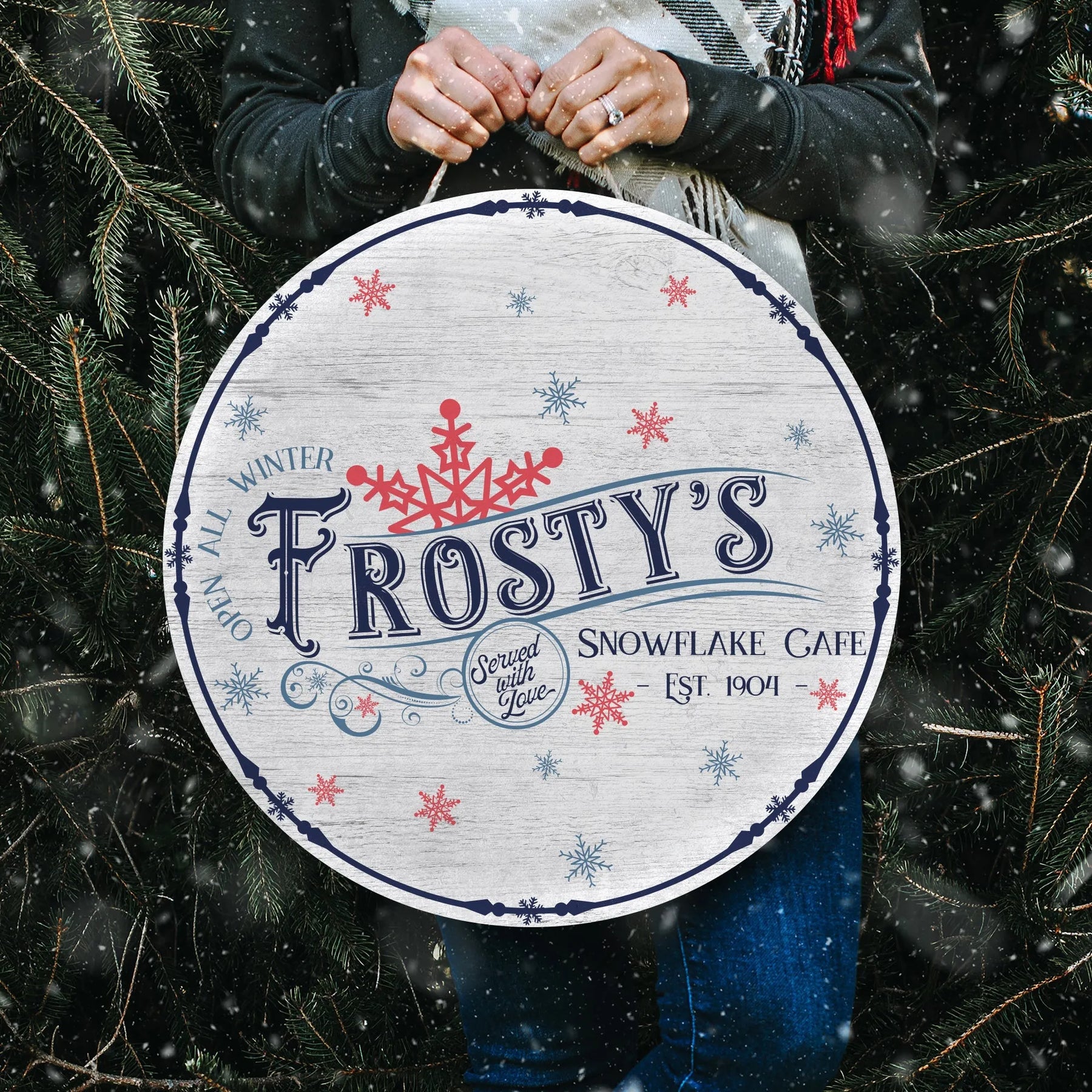 Welcome to Frosty's Snowflake Cafe! This clever door sign is sure to brighten up your Christmas decor this year while reminding all your guests of the cozy winter season. Perfect for adding a bit of festive cheer to your home!