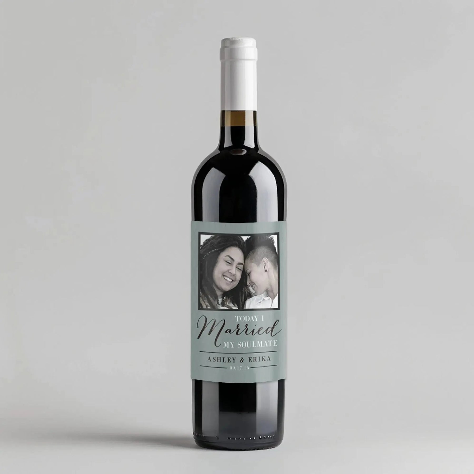 Make the perfect wedding gift with our Soulmate Wine Label. This custom label will add a personal touch to your favorite bottle of wine. Celebrate love and happiness with this thoughtful detail.