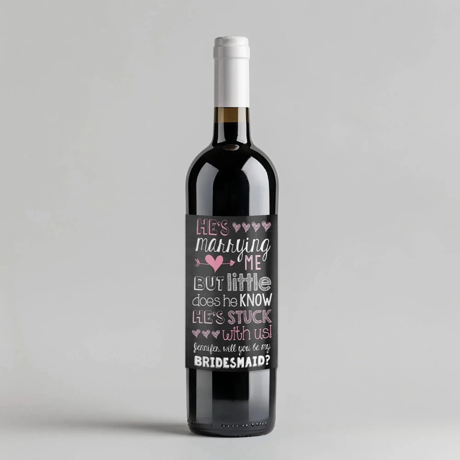 Show your bridesmaids some love with our Stuck with Us Chalkboard Bridesmaid Wine Label! Perfect for gifting or for the big day, this label adds a special touch to any wine bottle. Cheers to lifelong friendships and unforgettable memories.