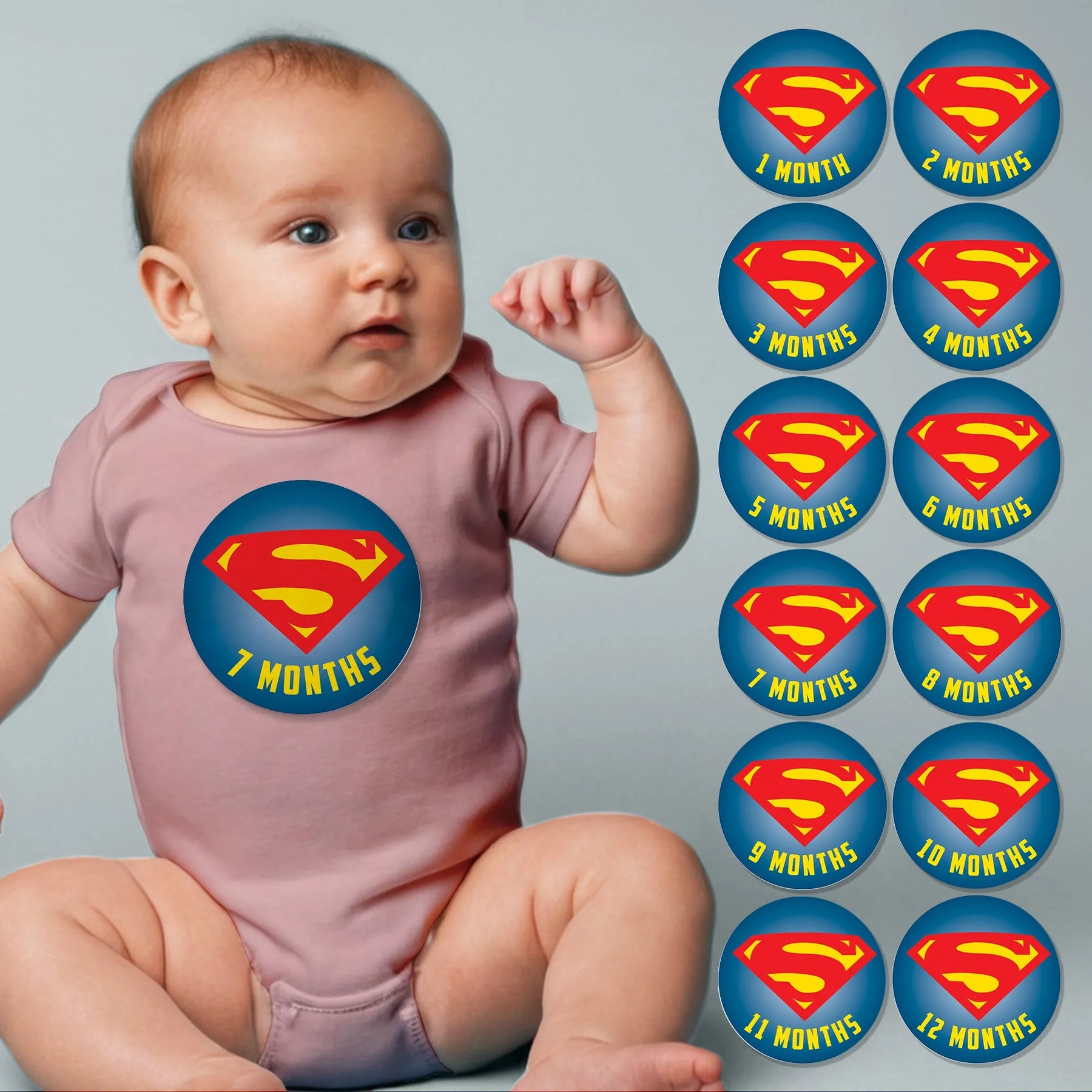 Boost your baby's cuteness with our Superman Baby Month Stickers! Featuring the iconic Superman logo, these stickers make for adorable monthly photos to cherish. Watch your little one grow and show off their superhero potential. Perfect for sharing with friends and family on social media.