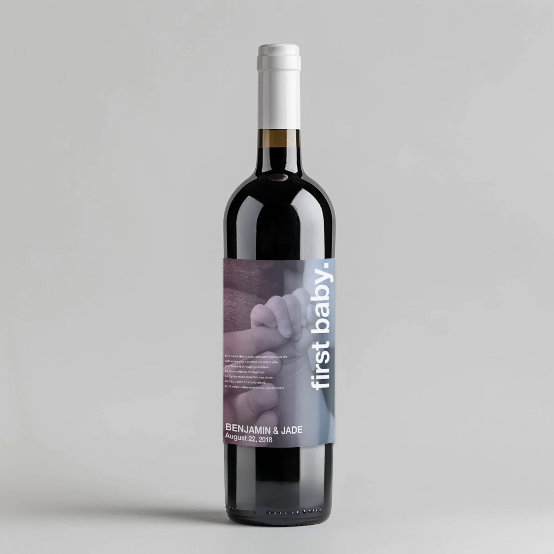 Capture every milestone with Swiss Pic First Baby's personalized milestone wine label. Cherish the special moments with a custom label for each bottle, perfect for photos or gifting. Celebrate your growing family in a unique and memorable way.