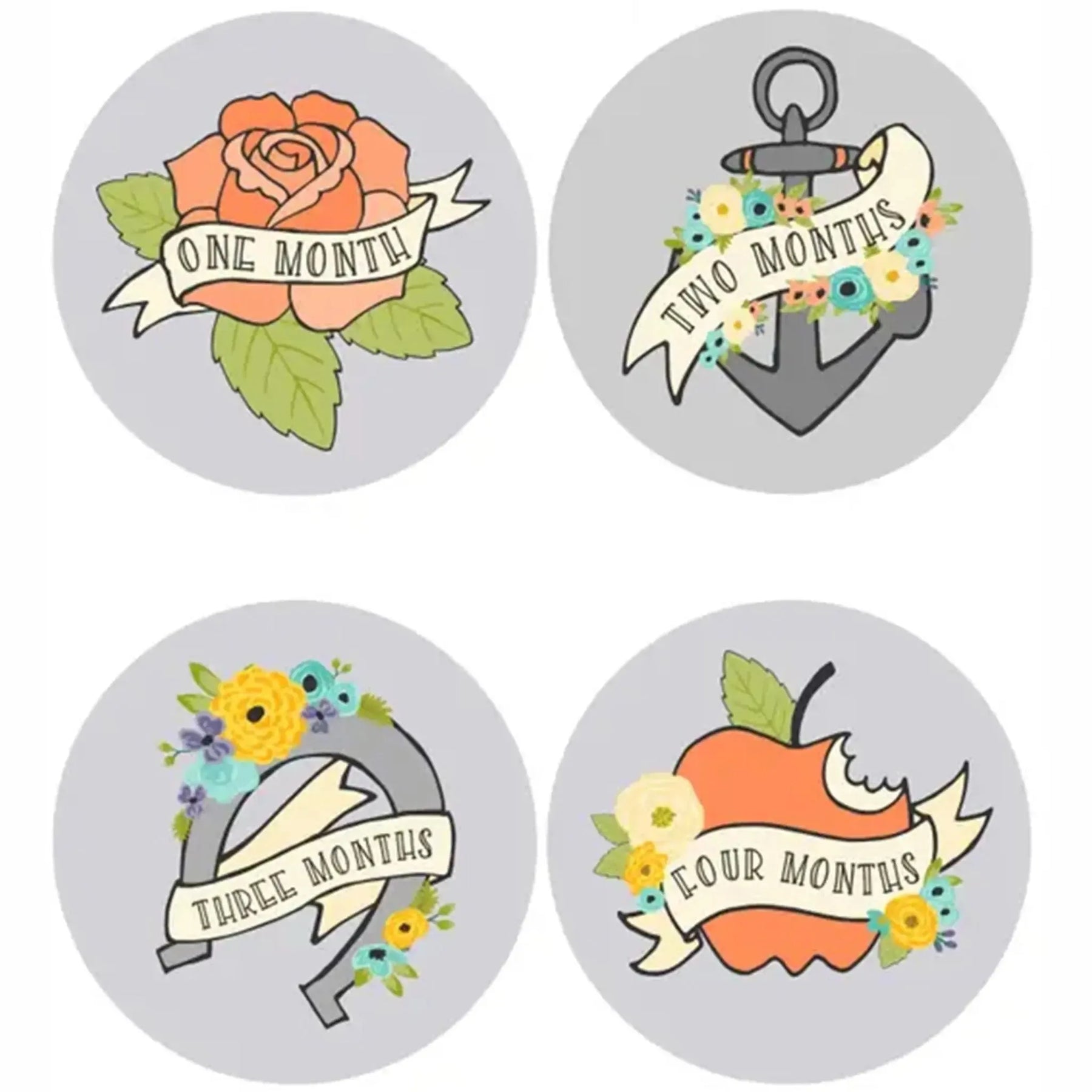 Capture your little one's milestones with our Tattoo Baby Month Stickers! These quirky tattoo-style stickers are a playful way to document your baby's growth from one month to 12 months. Say goodbye to boring milestone photos and hello to some seriously cool pics!