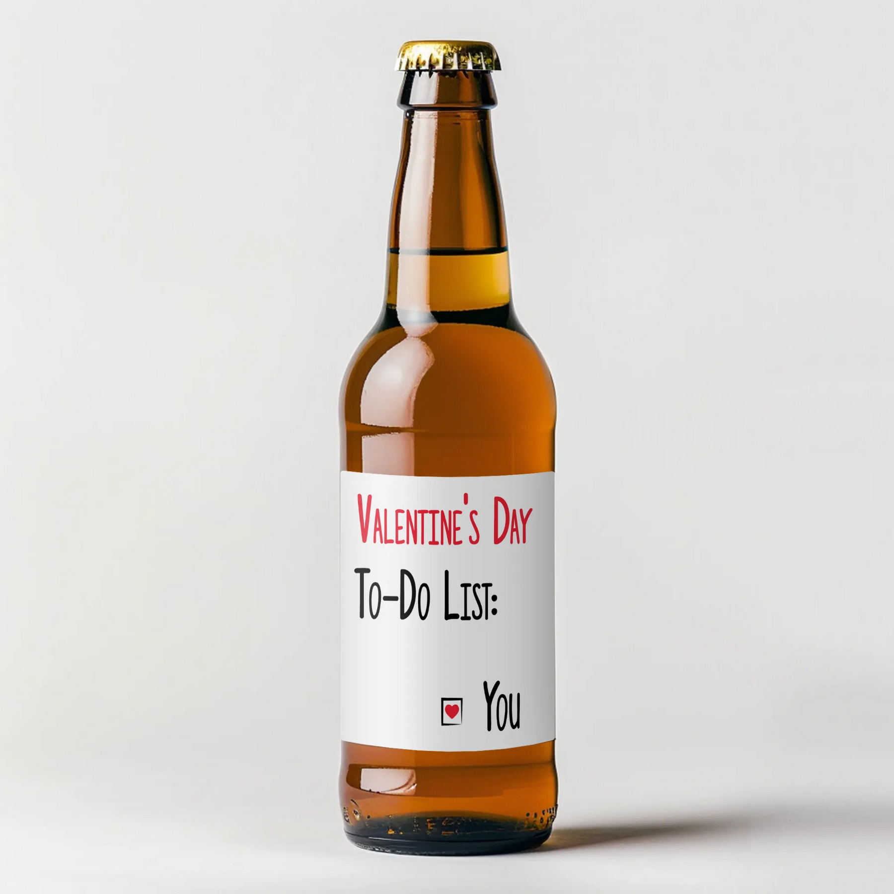 Organize your Valentine's Day with our To Do Valentine Beer Label. Plan out your special day with our convenient and festive to do list. Make sure you don't forget a thing and have a stress-free Valentine's celebration. Cheers to love!